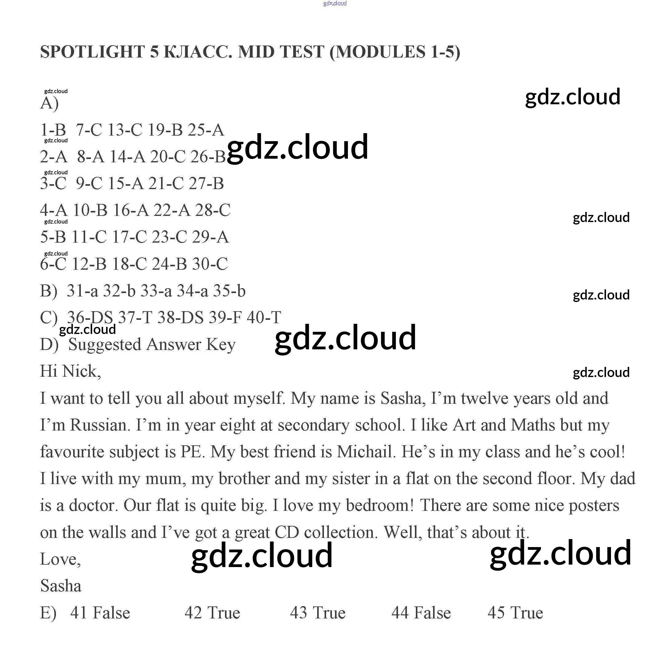 Ответ на задание Mid test Контрольные задания Английский язык за 5 (пятый) класс Ваулина, Дули, Подоляко, Эванс Spotlight 2008