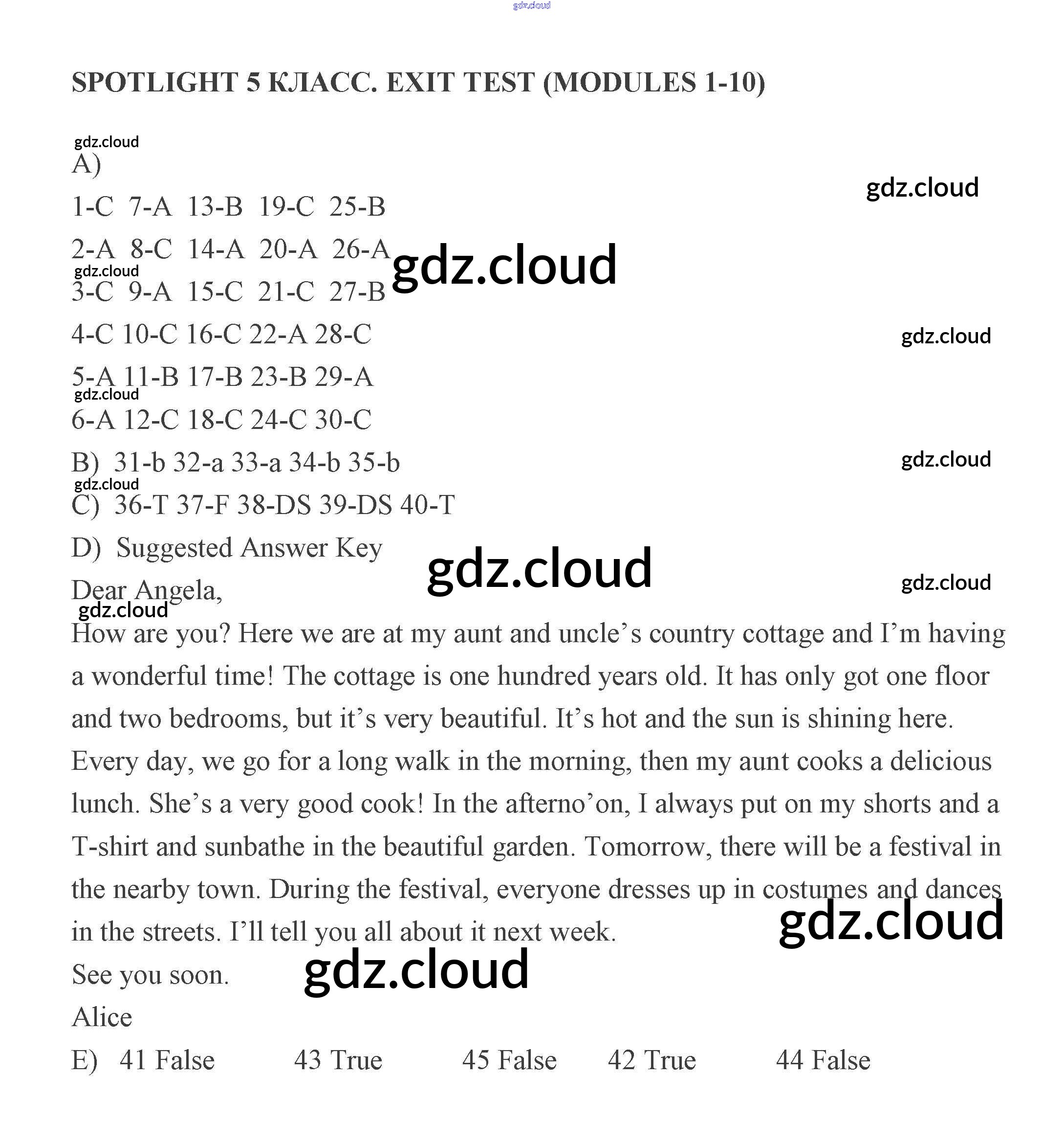 Ответы к Итоговому тесту по Английскому языку 5 класс Контрольные задания Ваулина Spotlight Просвещение