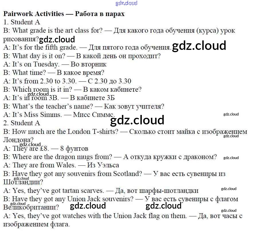 Работа в парах (ответы) по Английскому языку 5 класс Рабочая тетрадь Ваулина Spotlight Просвещение, Просвещение