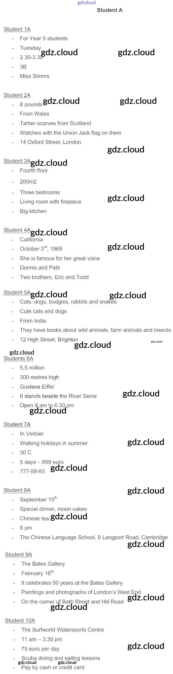 Ответ на задание Student A Рабочая тетрадь Английский язык за 5 (пятый) класс Ваулина, Дули, Подоляко, Эванск Spotlight 2016, 2022