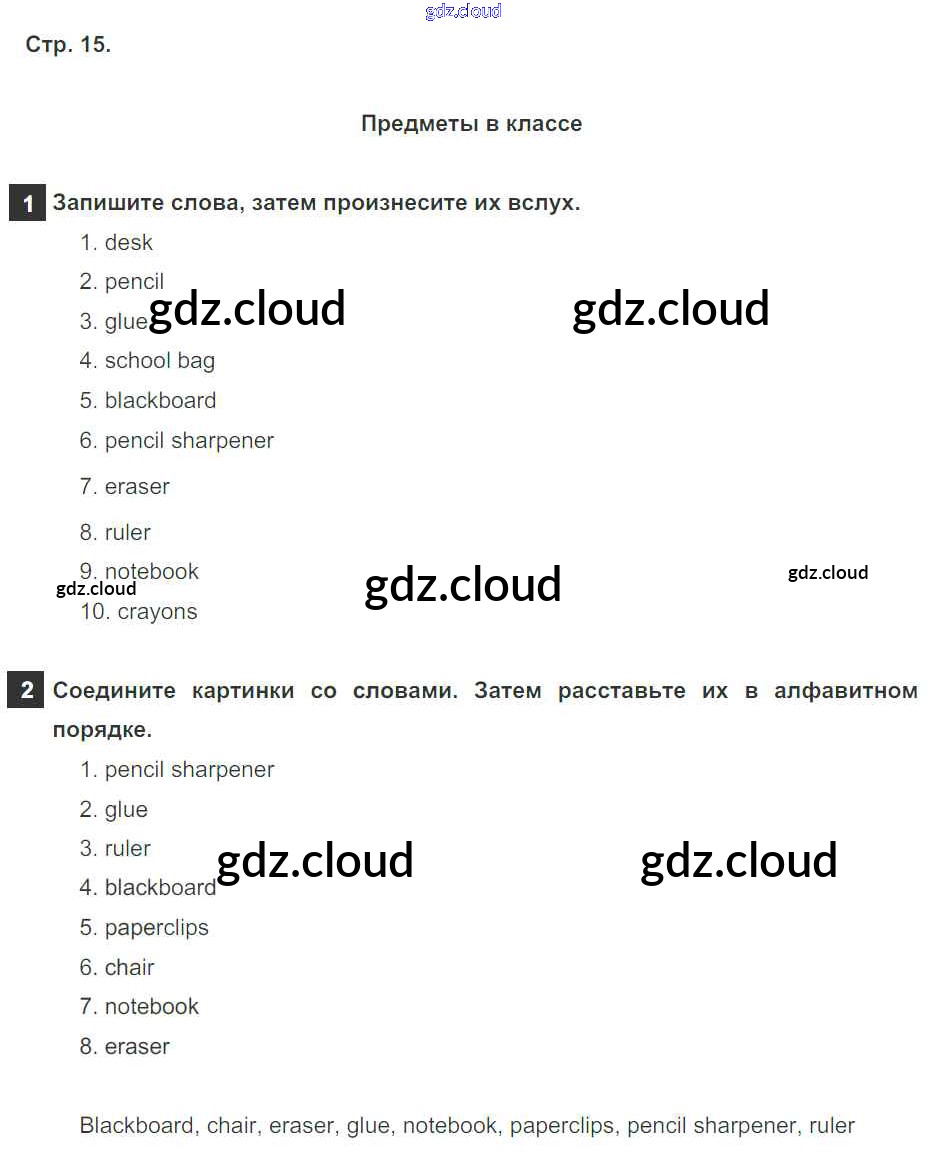 Ответ на задание 15 Рабочая тетрадь Английский язык за 5 (пятый) класс Ваулина, Дули, Подоляко, Эванск Spotlight 2016, 2022