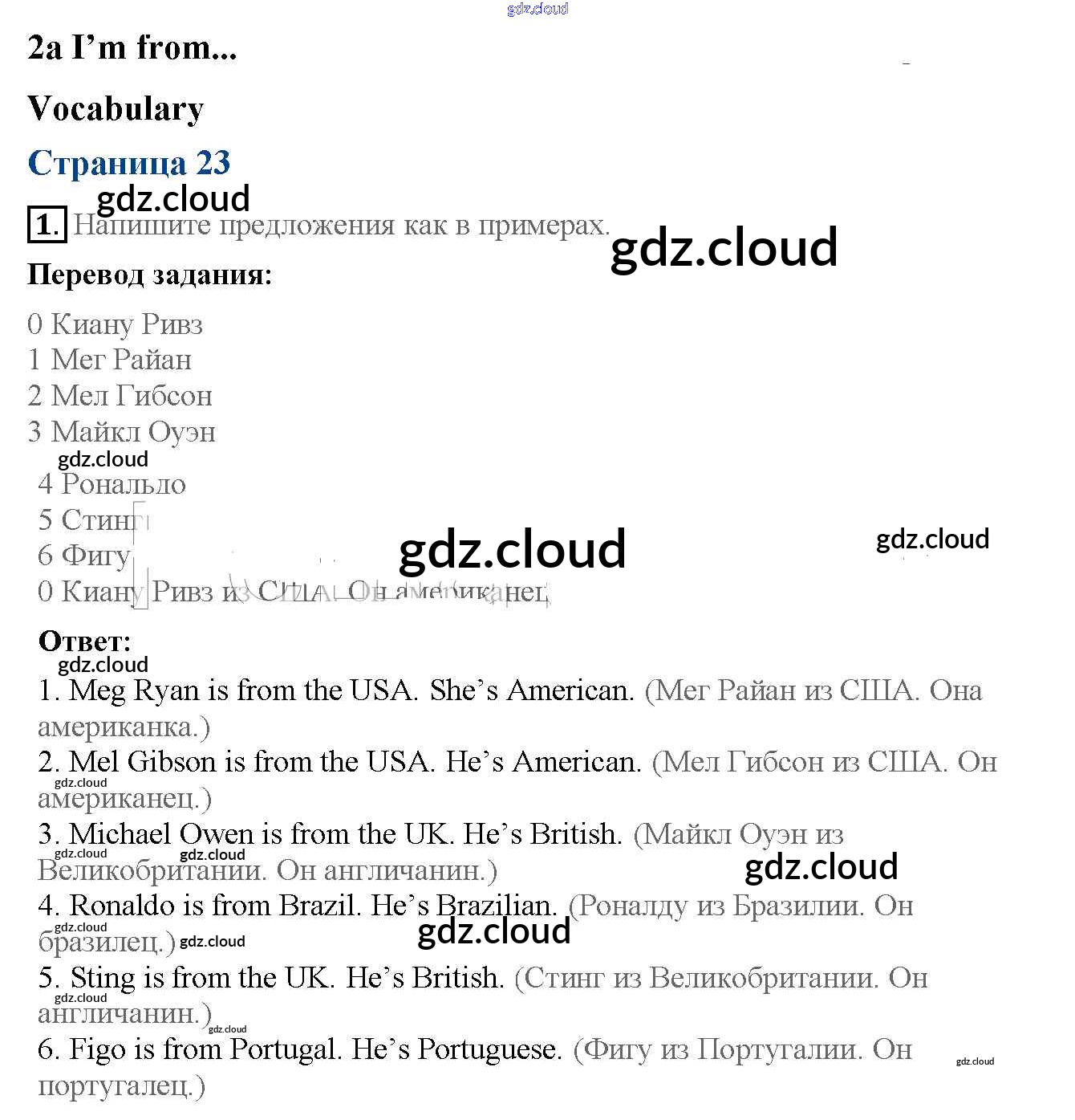 Ответ на задание 23 Рабочая тетрадь Английский язык за 5 (пятый) класс Ваулина, Дули, Подоляко, Эванск Spotlight 2016, 2022