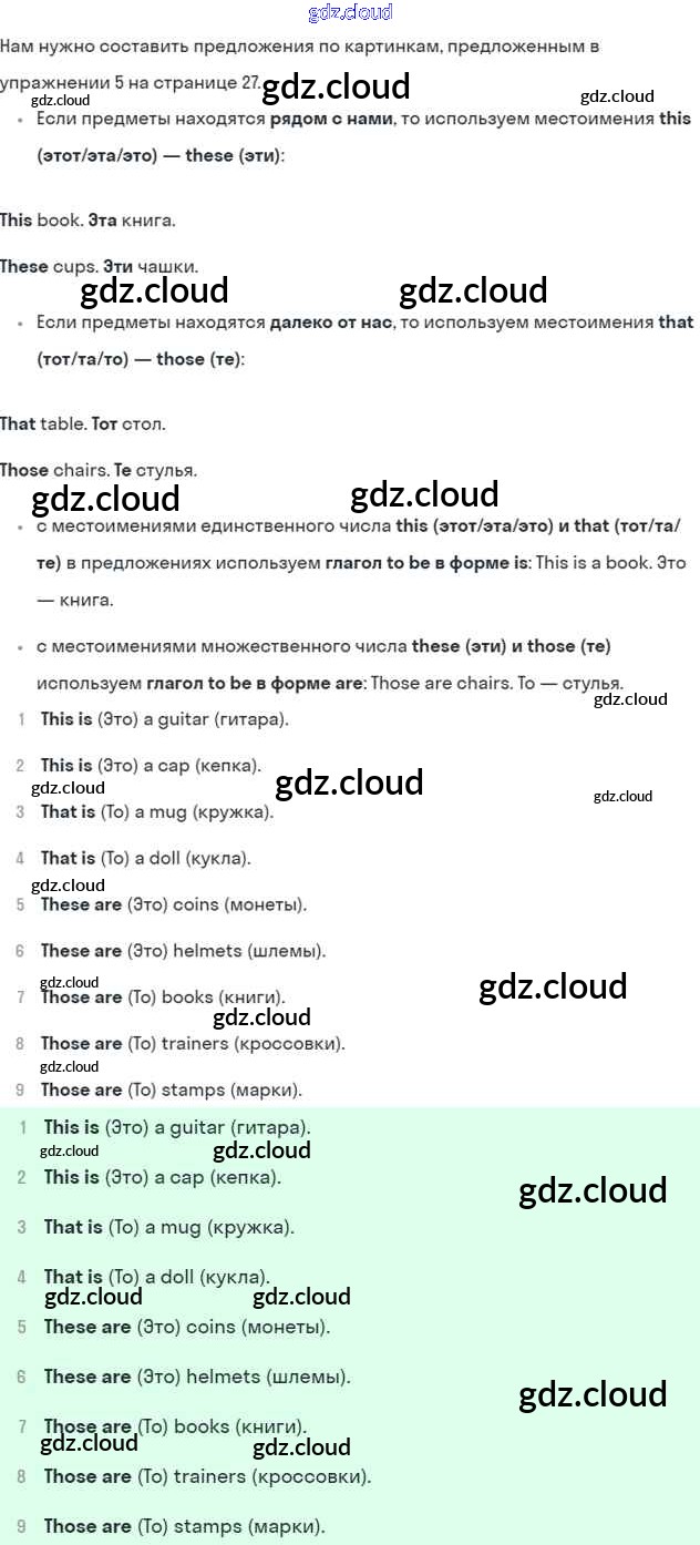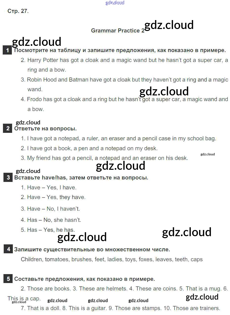 Ответ на задание 27 Рабочая тетрадь Английский язык за 5 (пятый) класс Ваулина, Дули, Подоляко, Эванск Spotlight 2016, 2022