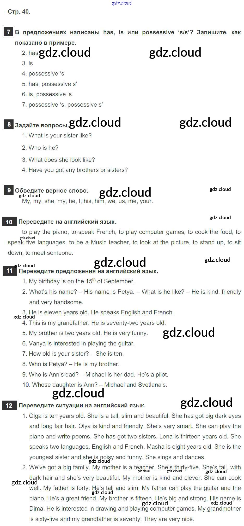 Ответ на задание 40 Рабочая тетрадь Английский язык за 5 (пятый) класс Ваулина, Дули, Подоляко, Эванск Spotlight 2016, 2022