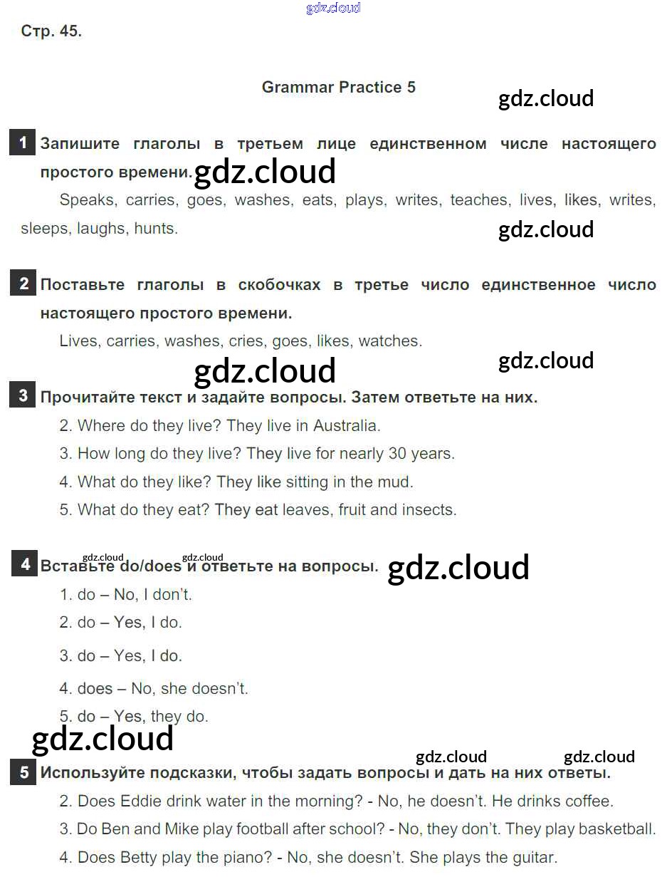 Ответ на задание 45 Рабочая тетрадь Английский язык за 5 (пятый) класс Ваулина, Дули, Подоляко, Эванск Spotlight 2016, 2022