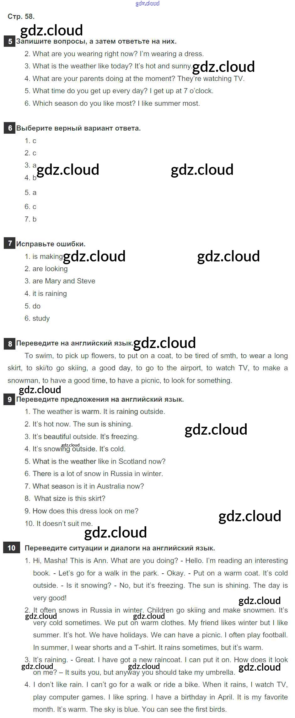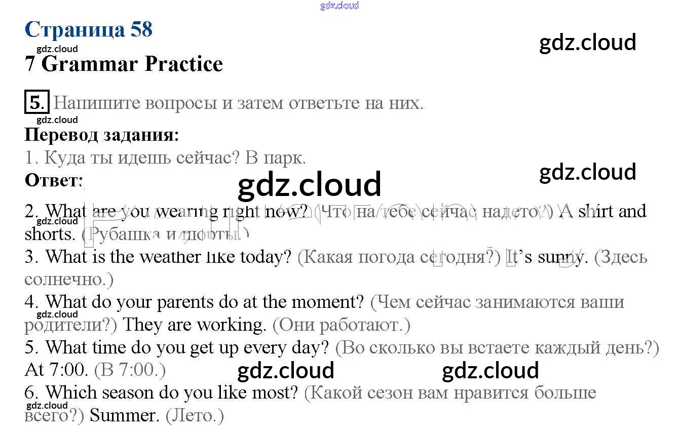 Ответ на задание 58 Рабочая тетрадь Английский язык за 5 (пятый) класс Ваулина, Дули, Подоляко, Эванск Spotlight 2016, 2022
