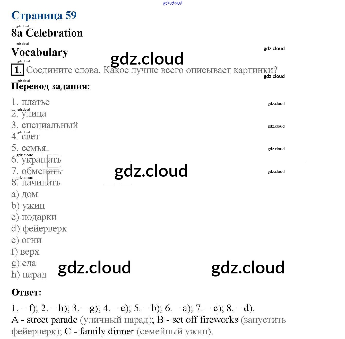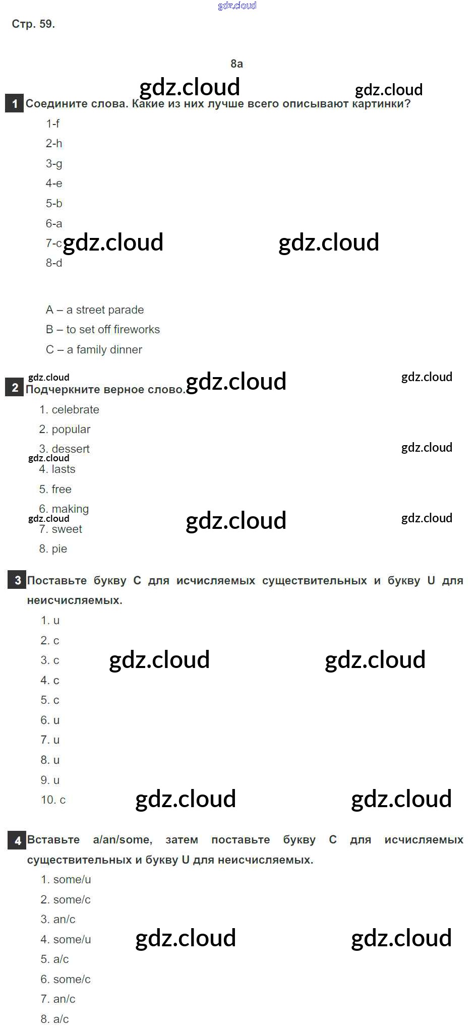 Ответ на задание 59 Рабочая тетрадь Английский язык за 5 (пятый) класс Ваулина, Дули, Подоляко, Эванск Spotlight 2016, 2022