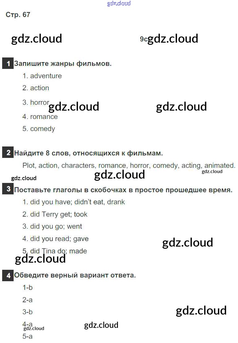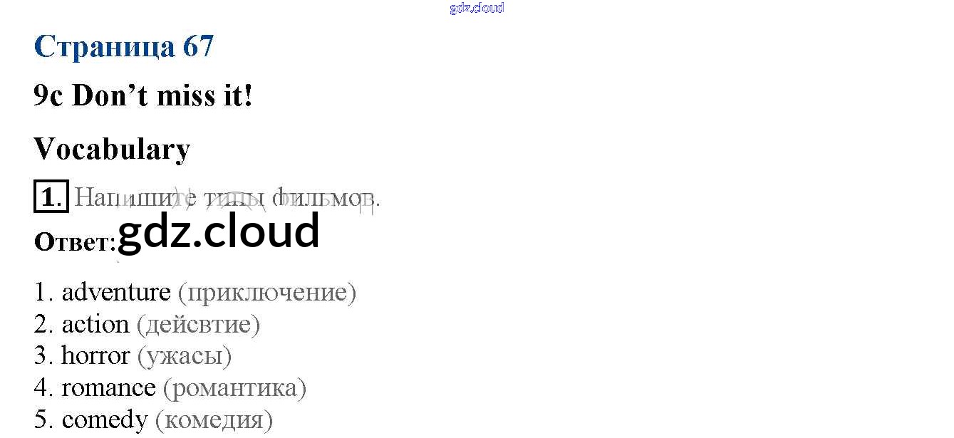 Ответ на задание 67 Рабочая тетрадь Английский язык за 5 (пятый) класс Ваулина, Дули, Подоляко, Эванск Spotlight 2016, 2022