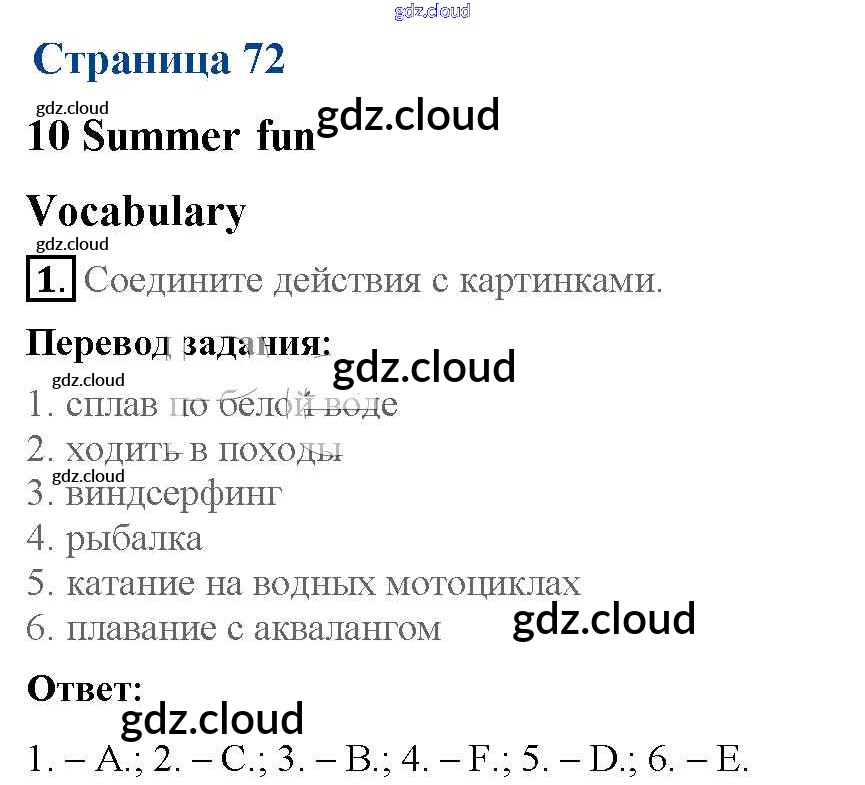 Ответ на задание 72 Рабочая тетрадь Английский язык за 5 (пятый) класс Ваулина, Дули, Подоляко, Эванск Spotlight 2016, 2022