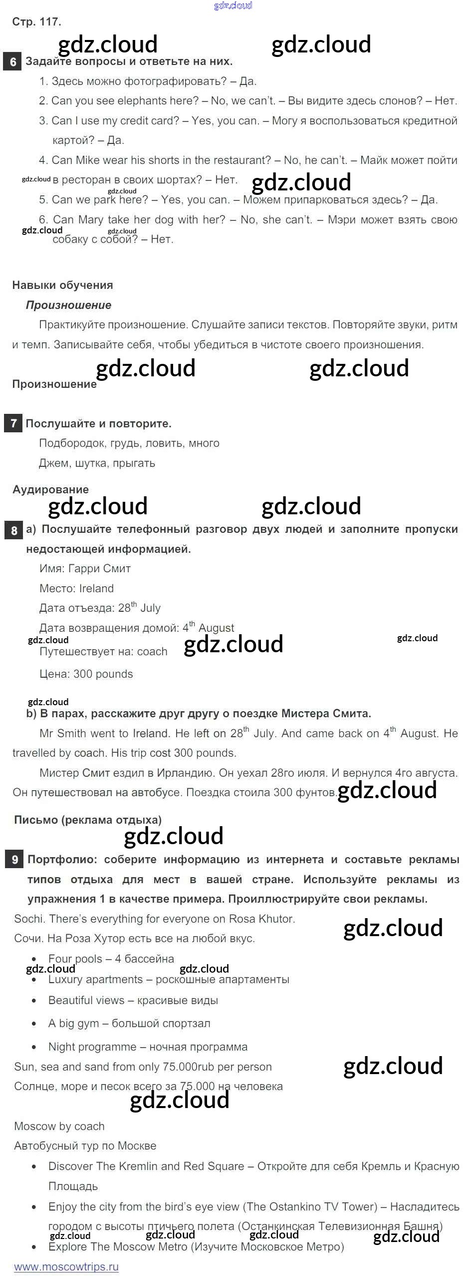 Ответ на задание стр. 117 Учебник Английский язык за 5 (пятый) класс Ваулина, Дули, Подоляко, Эванск Spotlight 2015
