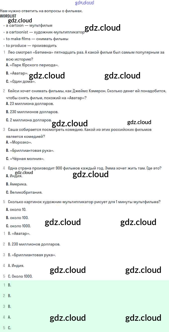 Ответы к Unit 3. At the film studio по Английскому языку 5 класс Учебник Вербицкая Forward Часть 1, 2 Вентана-граф