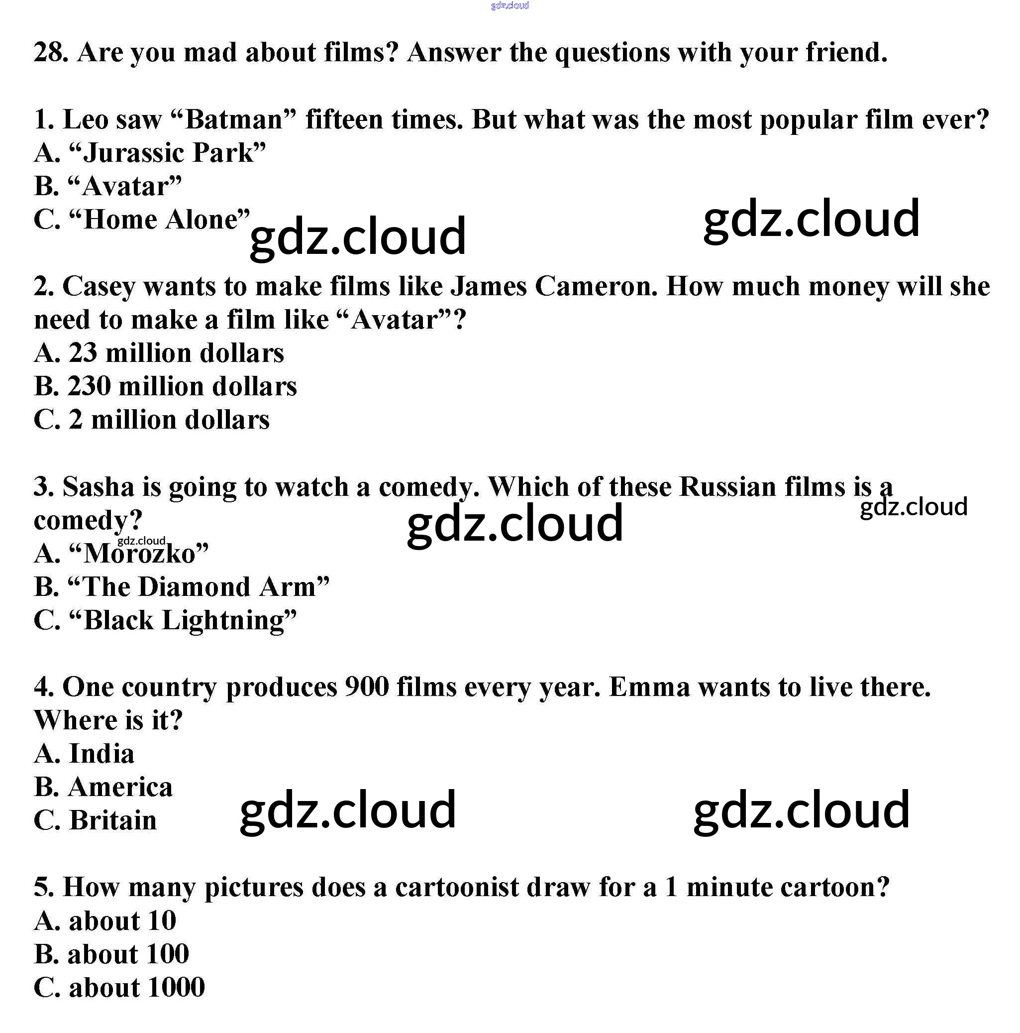 Ответ на задание 28 Учебник Английский язык за 5 (пятый) класс Вербицкая, Эббс, Уорелл Forward 2016 Часть 1, 2