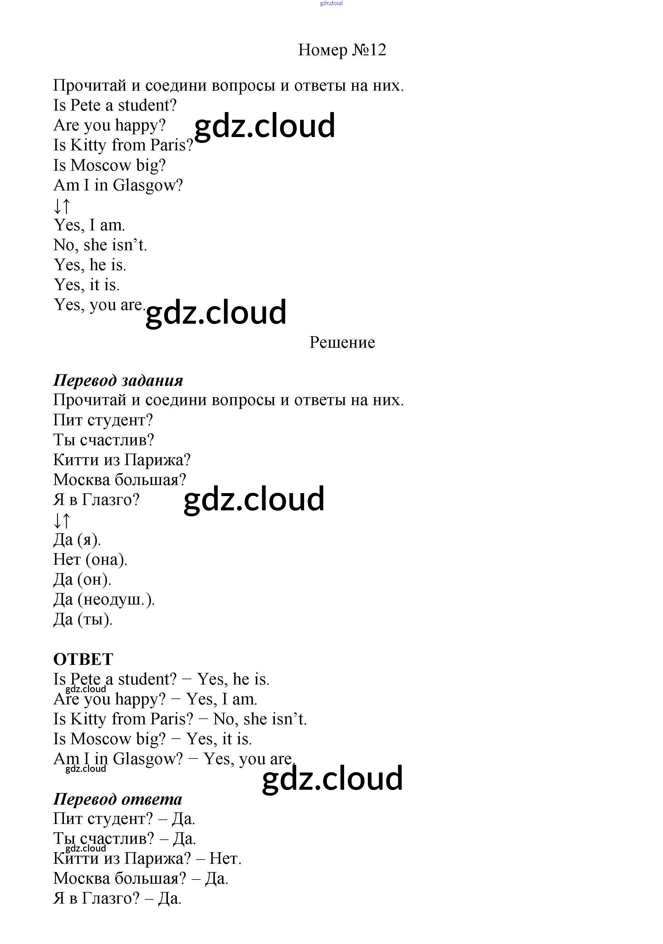 Ответ на задание 12 Рабочая тетрадь Английский язык за 5 (пятый) класс Афанасьева, Михеева Новый курс 2017 Часть 1, 2