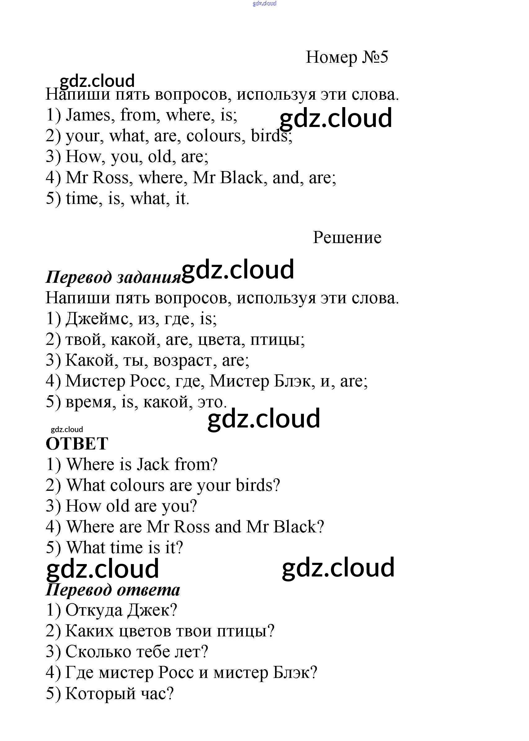 Ответ на задание 5 Рабочая тетрадь Английский язык за 5 (пятый) класс Афанасьева, Михеева Новый курс 2017 Часть 1, 2