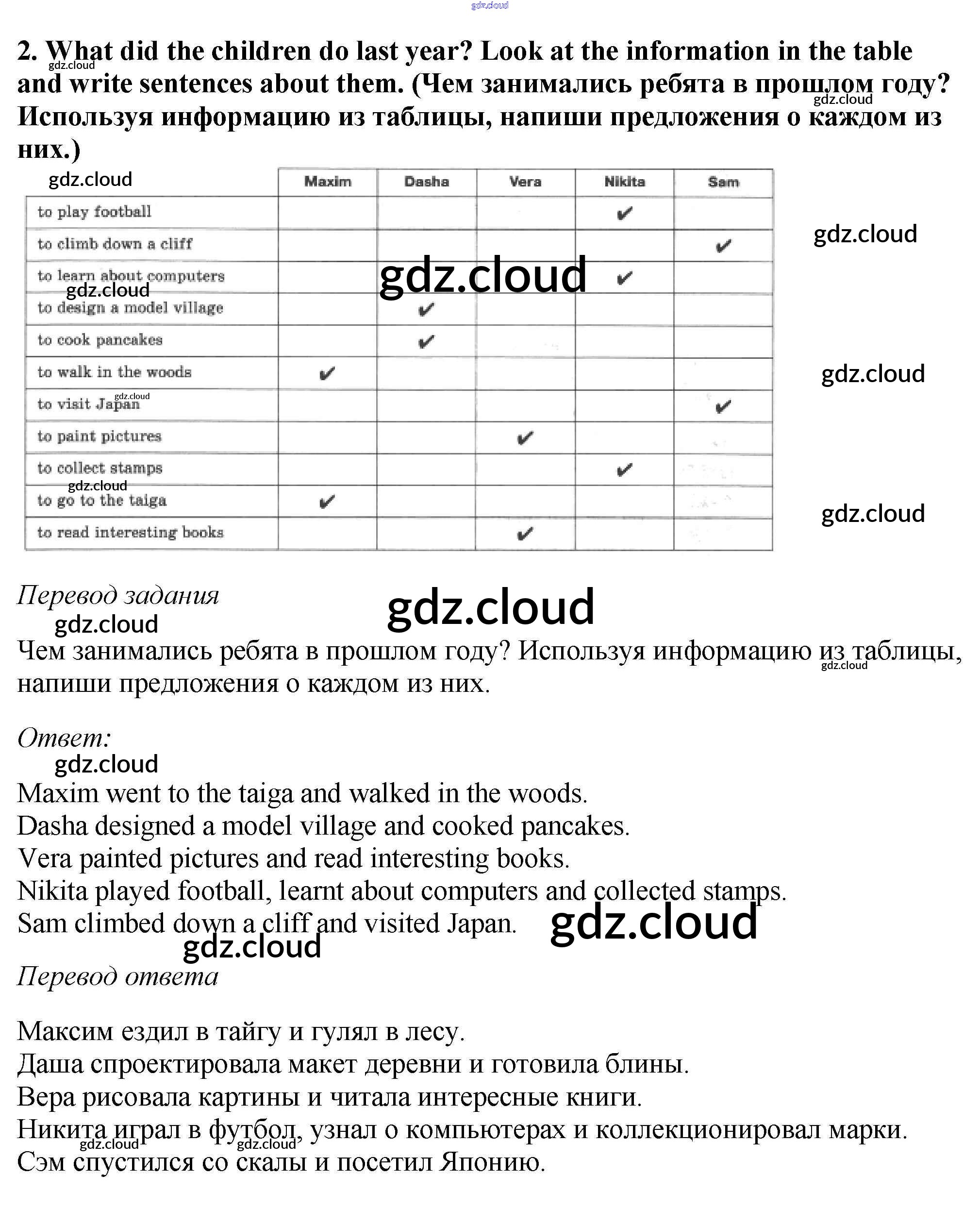 Ответ на задание 2 Рабочая тетрадь Английский язык за 5 (пятый) класс Вербицкая, Твердохлебова, Уорд, Уорелл, Эббс Forward 2016