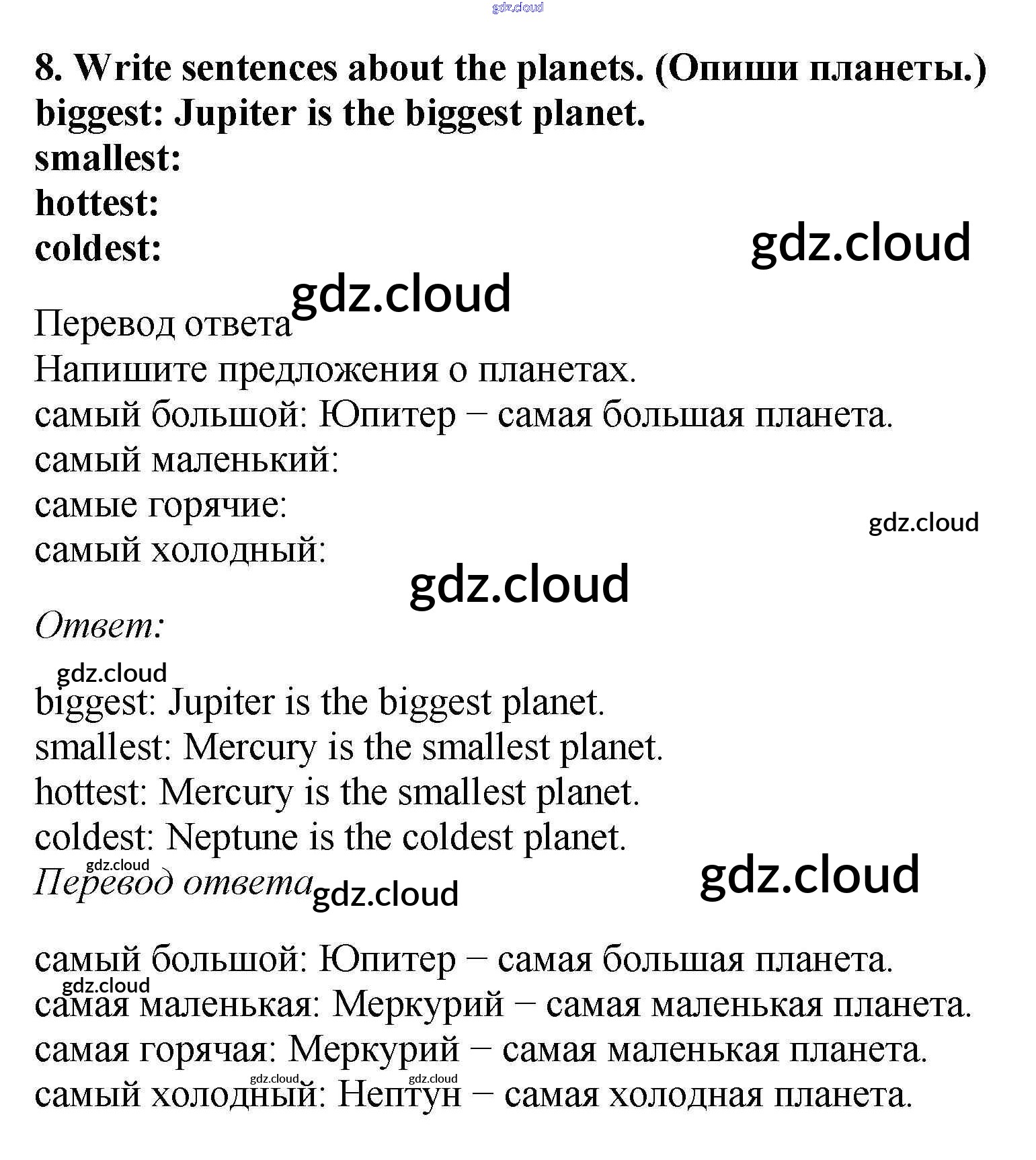 Ответ на задание 8 Рабочая тетрадь Английский язык за 5 (пятый) класс Вербицкая, Твердохлебова, Уорд, Уорелл, Эббс Forward 2016