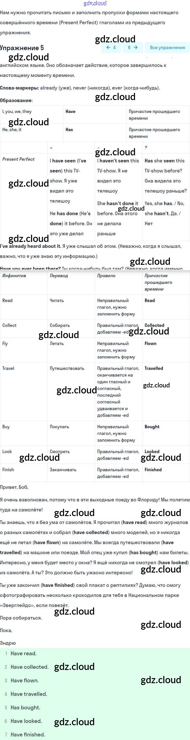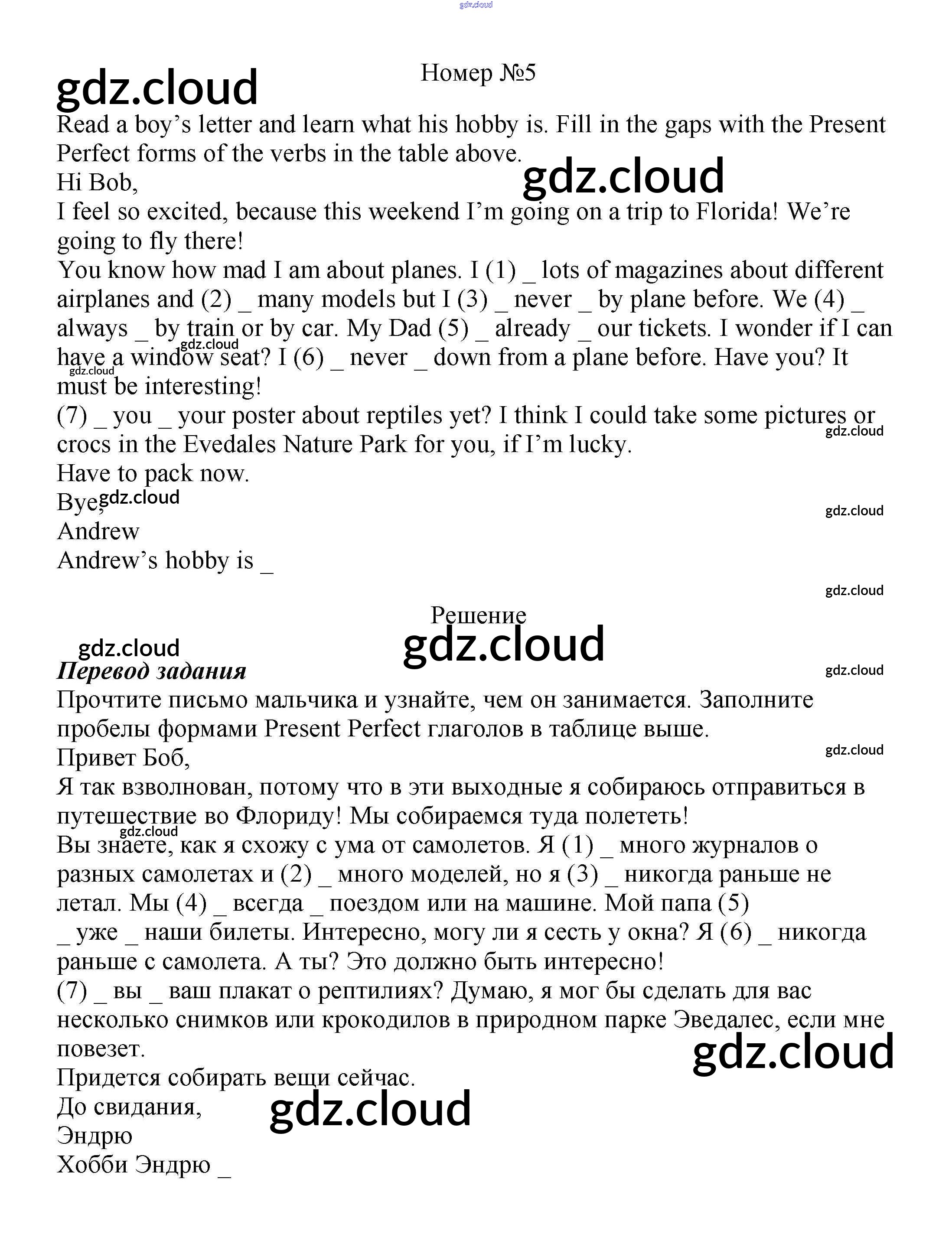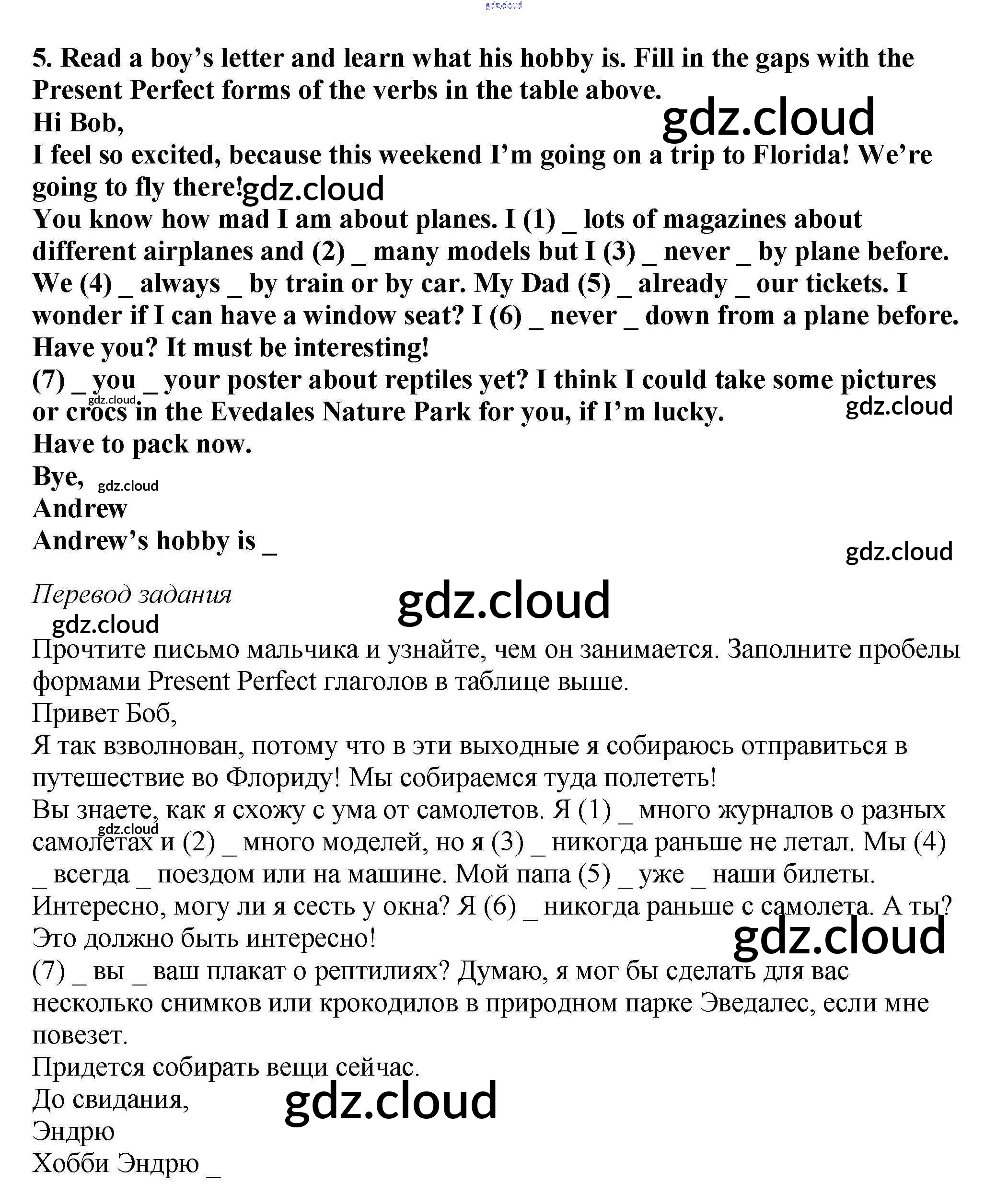 Ответ на задание 5 Рабочая тетрадь Английский язык за 5 (пятый) класс Вербицкая, Твердохлебова, Уорд, Уорелл, Эббс Forward 2016