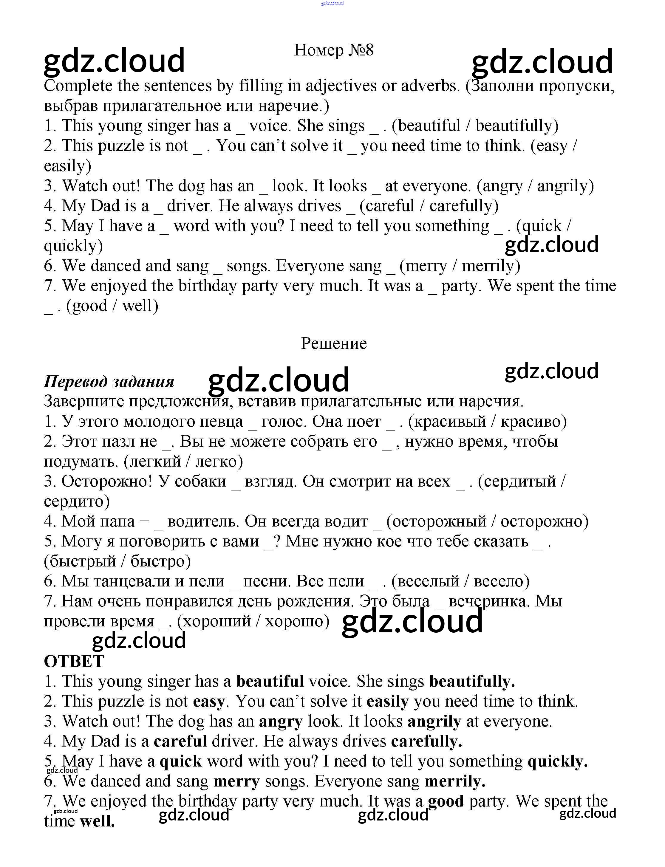 Ответ на задание 8 Рабочая тетрадь Английский язык за 5 (пятый) класс Вербицкая, Твердохлебова, Уорд, Уорелл, Эббс Forward 2016