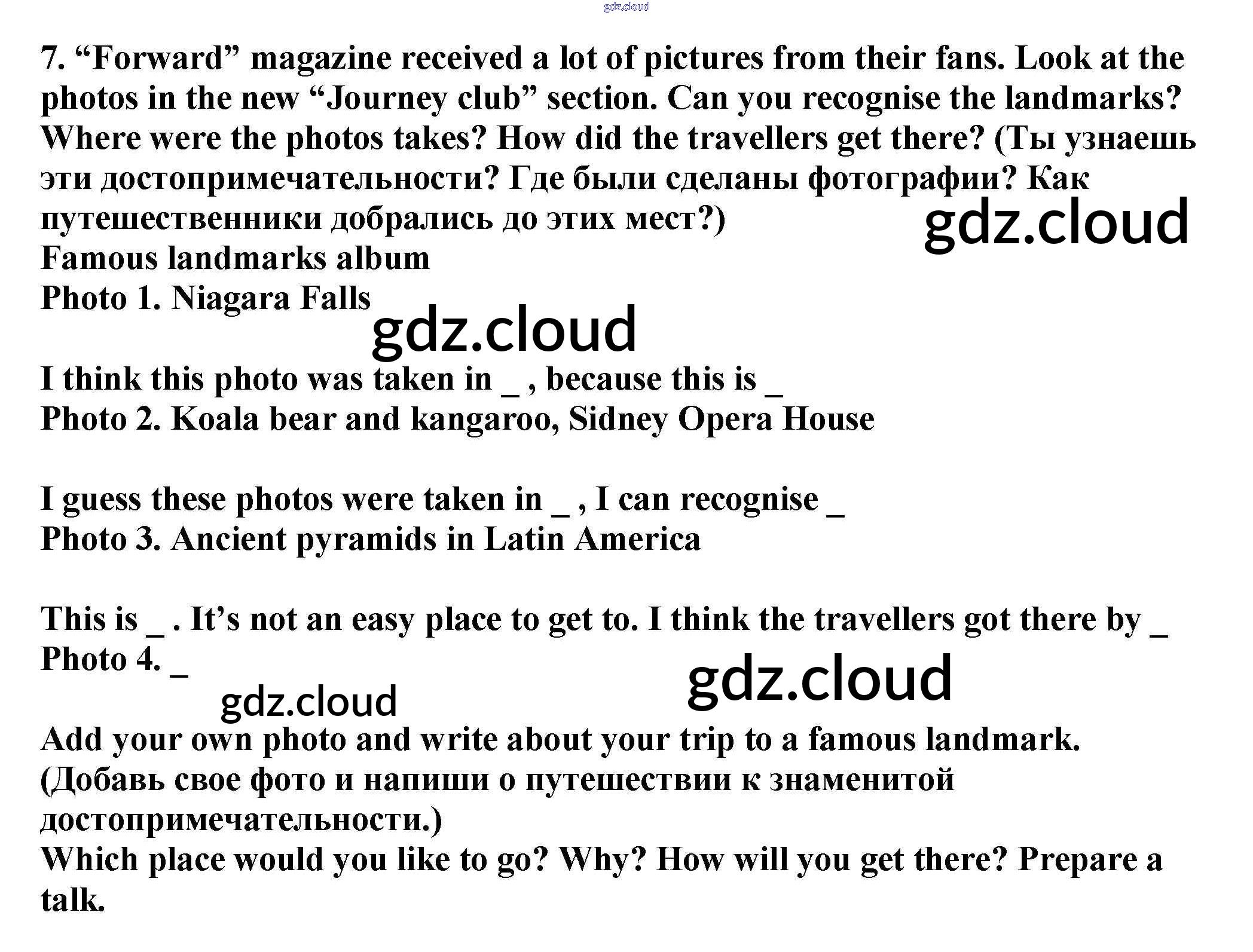Ответ на задание 7 Рабочая тетрадь Английский язык за 5 (пятый) класс Вербицкая, Твердохлебова, Уорд, Уорелл, Эббс Forward 2016