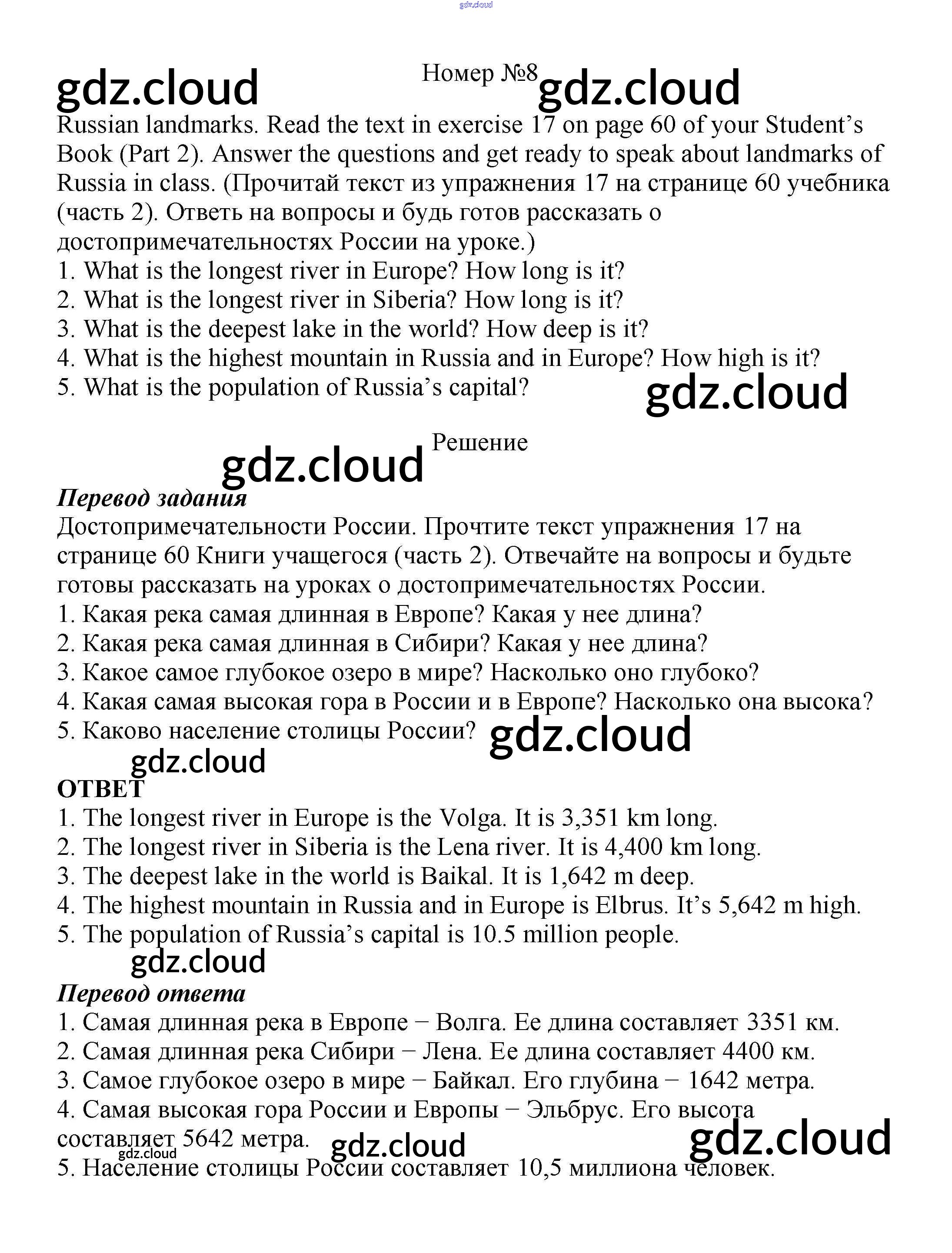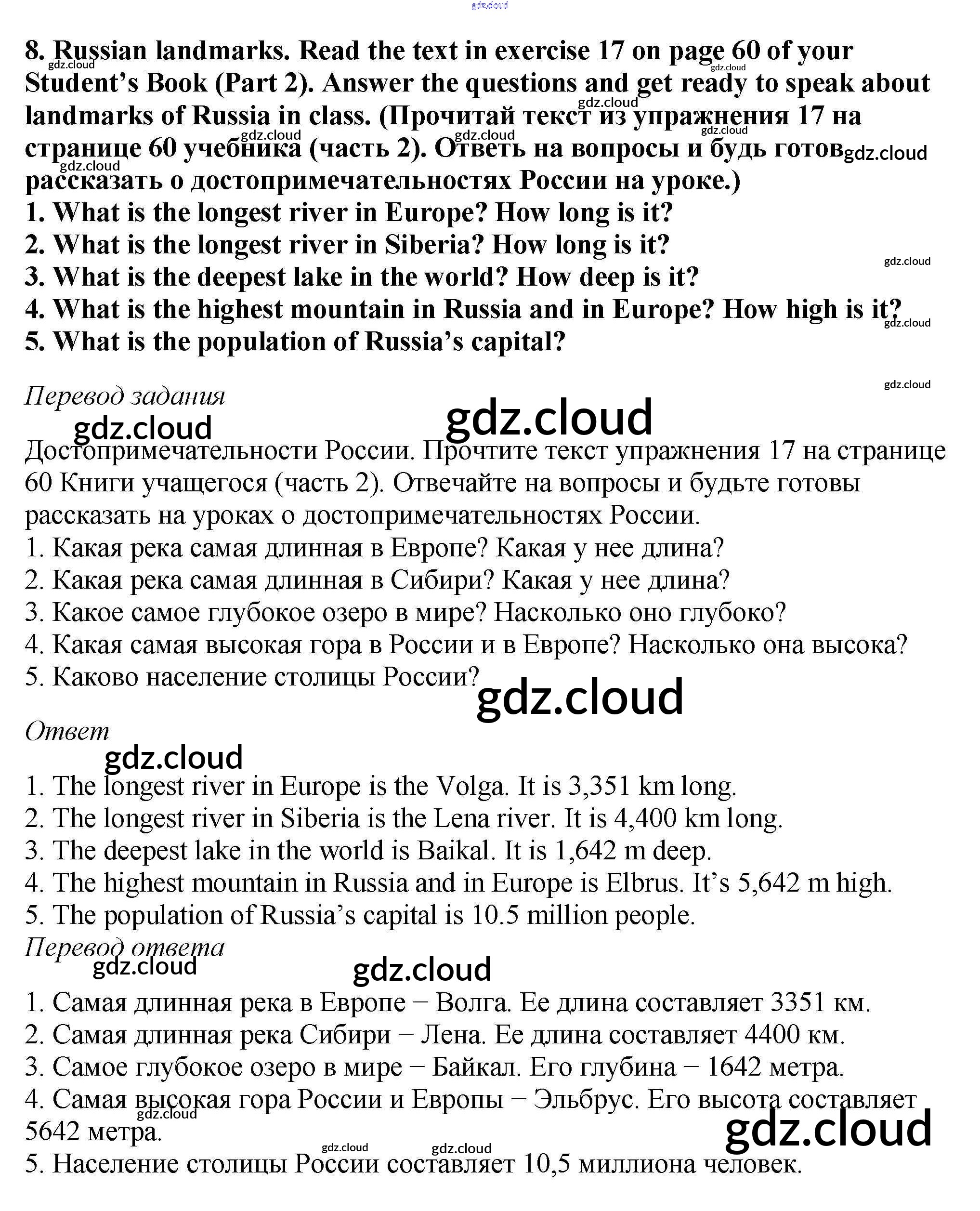 Ответ на задание 8 Рабочая тетрадь Английский язык за 5 (пятый) класс Вербицкая, Твердохлебова, Уорд, Уорелл, Эббс Forward 2016