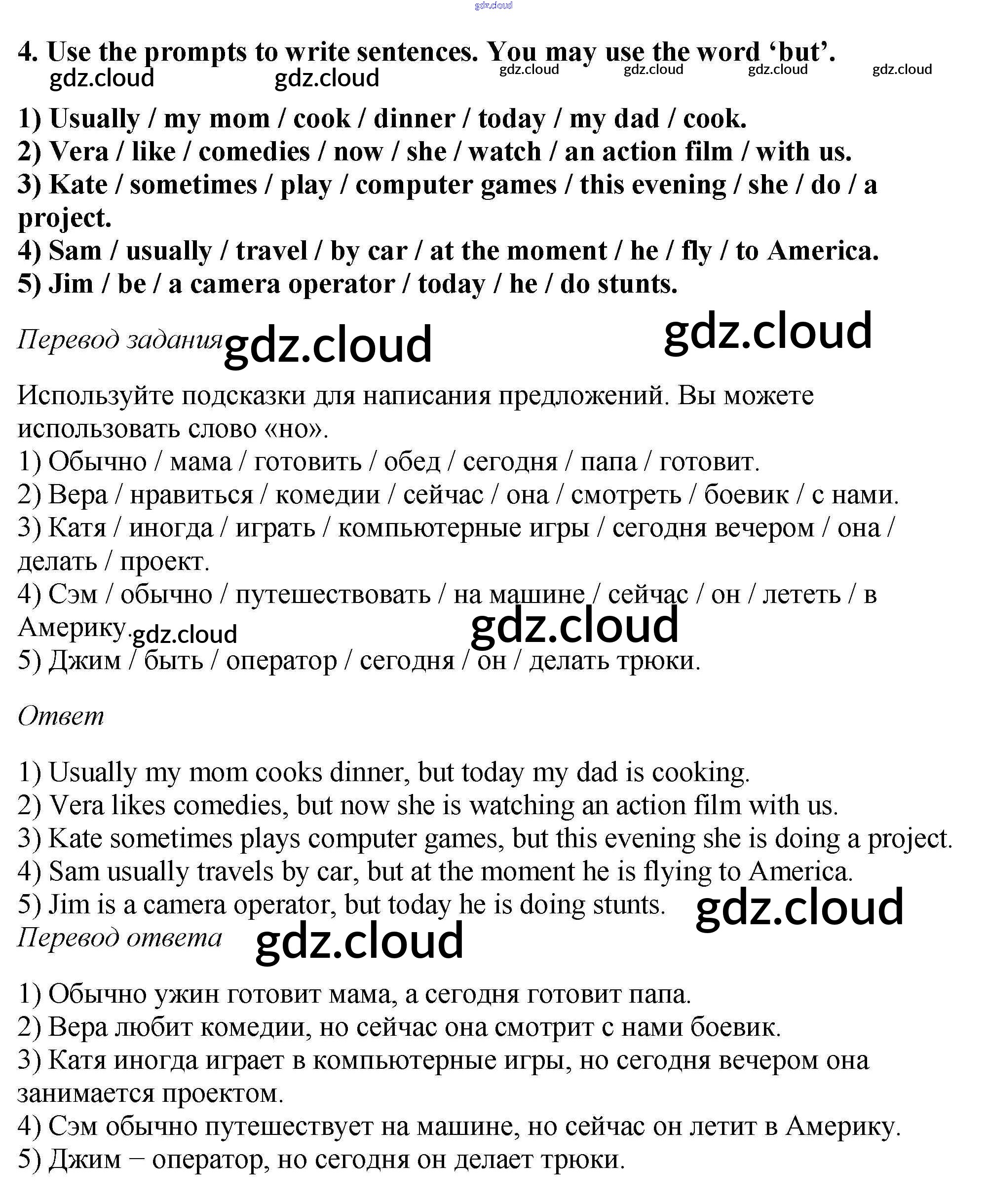 Ответ на задание 4 Рабочая тетрадь Английский язык за 5 (пятый) класс Вербицкая, Твердохлебова, Уорд, Уорелл, Эббс Forward 2016