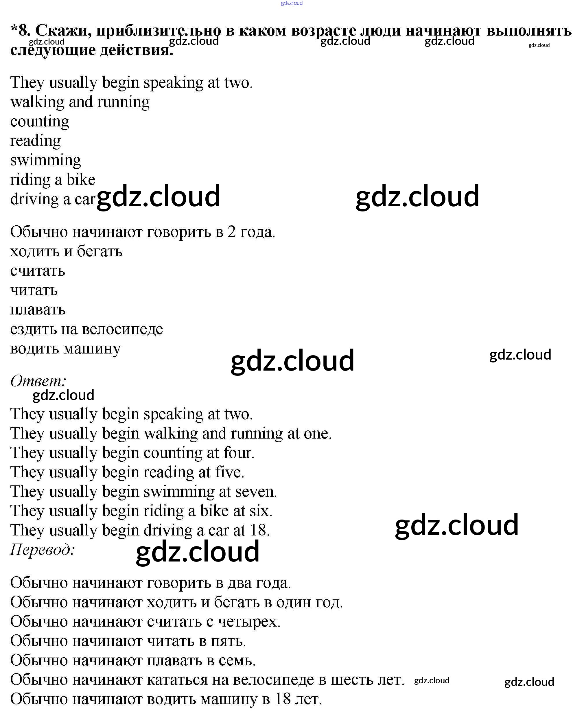 Ответ на задание 8 Учебник Английский язык  за 6 (шестой) класс Афанасьева, Михеева Новый курс  2017