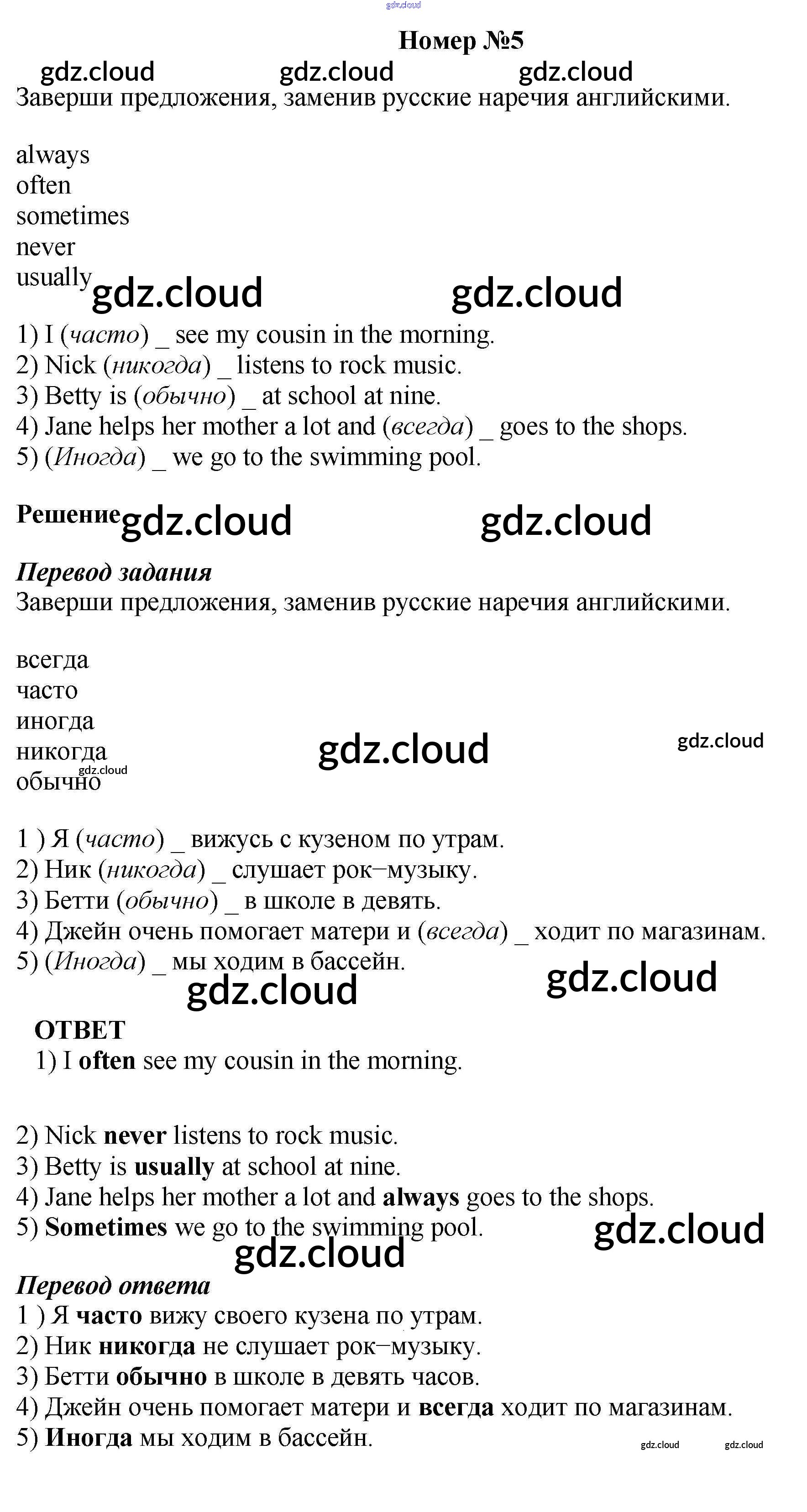 Ответ на задание 5 Рабочая тетрадь Английский язык  за 6 (шестой) класс Афанасьева, Михеева Новый курс  2017 Часть 1, 2
