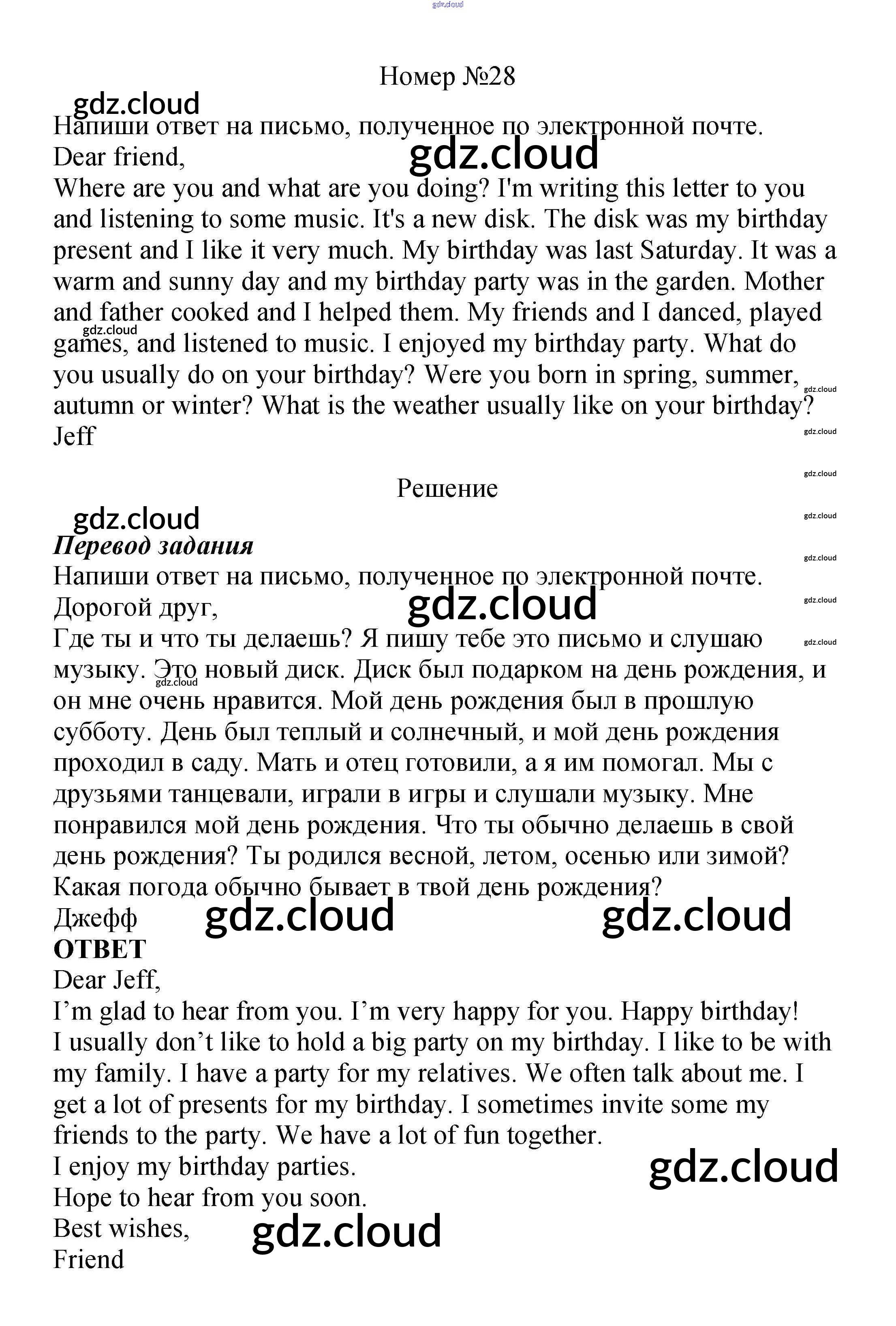 Ответ на задание 28 Рабочая тетрадь Английский язык  за 6 (шестой) класс Афанасьева, Михеева Новый курс  2017 Часть 1, 2
