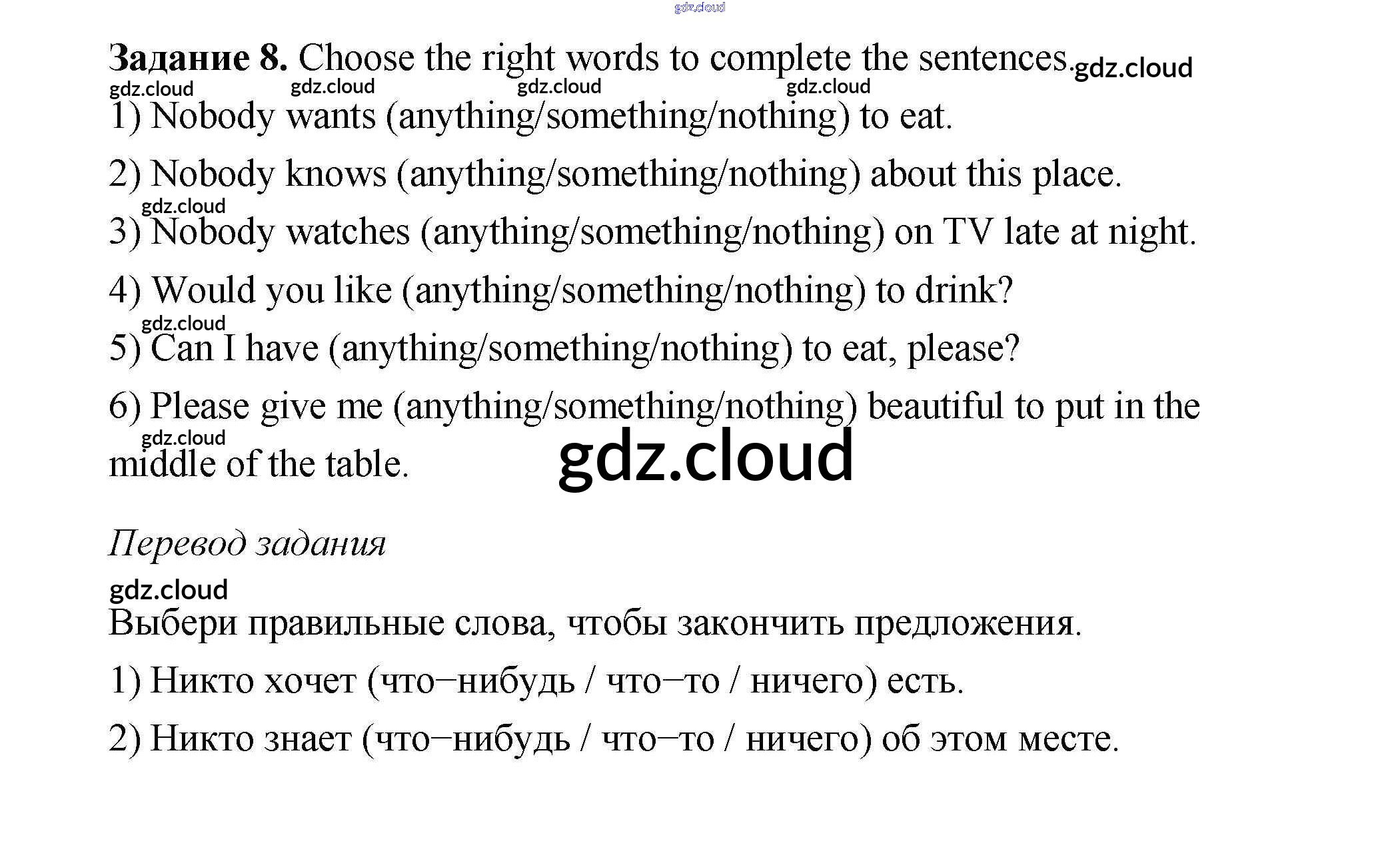 Ответ на задание 8 Учебник Английский язык  за 6 (шестой) класс Афанасьева, Михеева, Баранова Rainbow  2017 Часть 1, 2