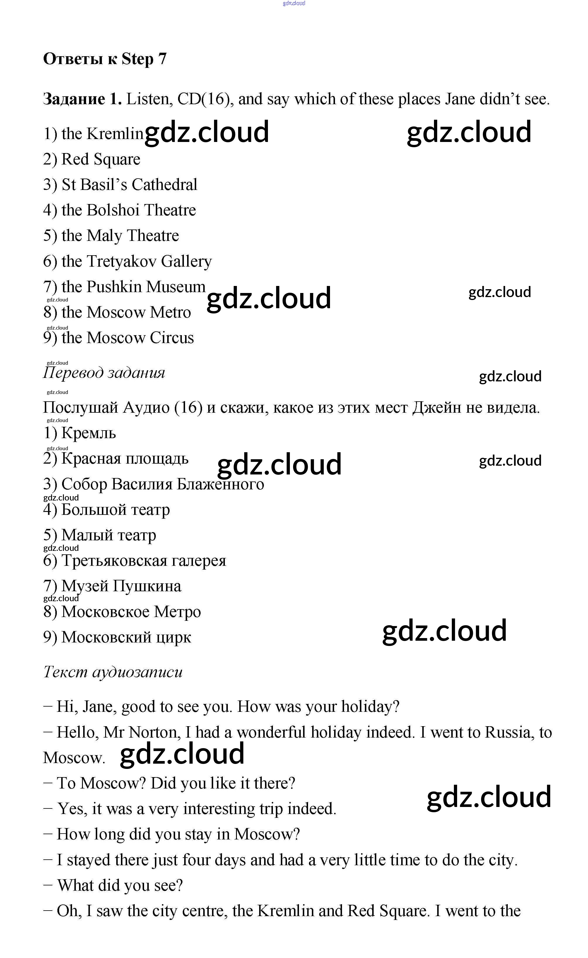 Step 7 Ответы к Unit 1 по Английскому языку 6 класс Учебник Афанасьева Rainbow  Часть 1, 2 Дрофа