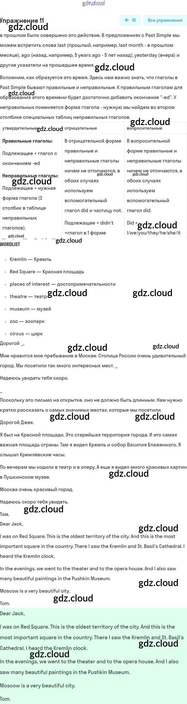 Ответ на задание 11 Учебник Английский язык  за 6 (шестой) класс Афанасьева, Михеева, Баранова Rainbow  2017 Часть 1, 2