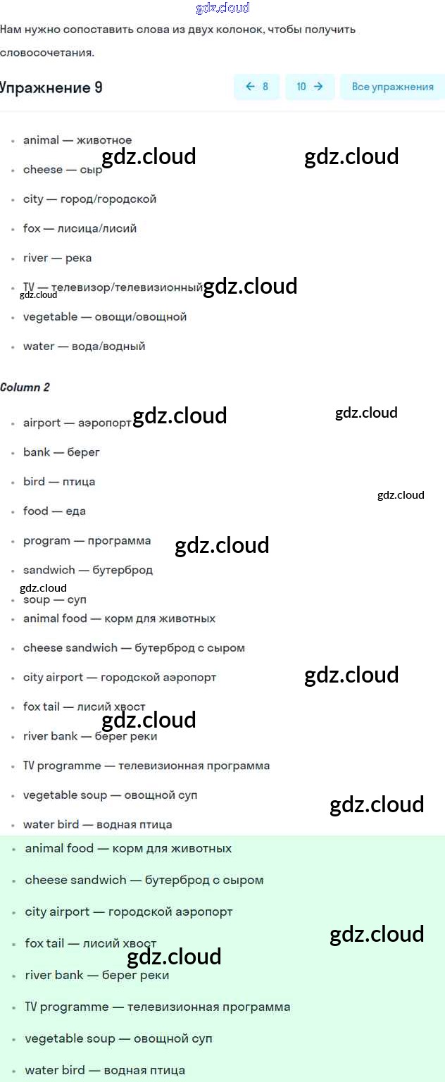 Ответ на задание 9 Учебник Английский язык  за 6 (шестой) класс Афанасьева, Михеева, Баранова Rainbow  2017 Часть 1, 2