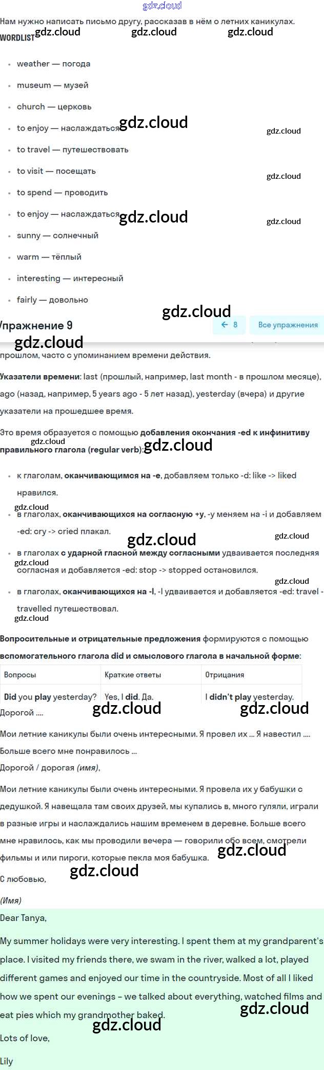 Ответ на задание 9 Учебник Английский язык  за 6 (шестой) класс Афанасьева, Михеева, Баранова Rainbow  2017 Часть 1, 2
