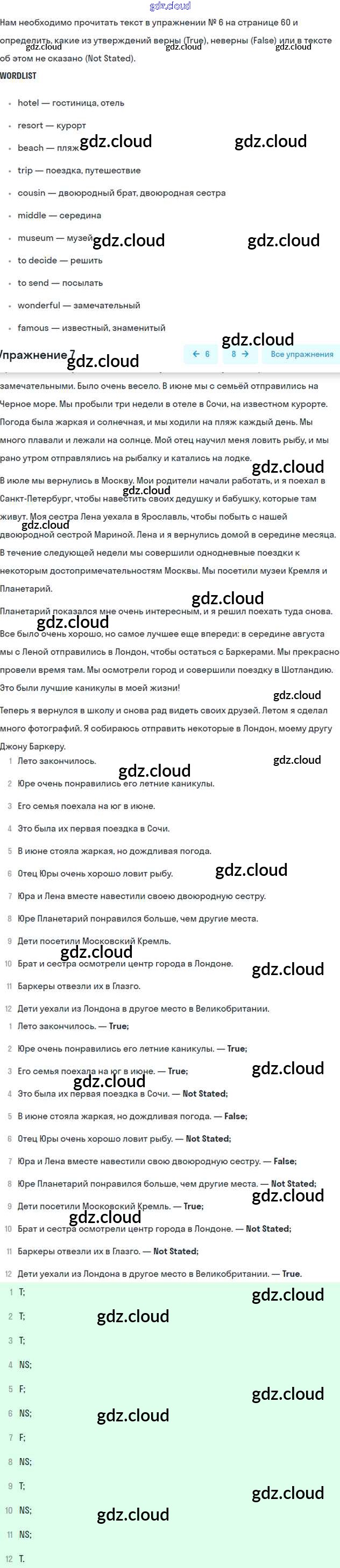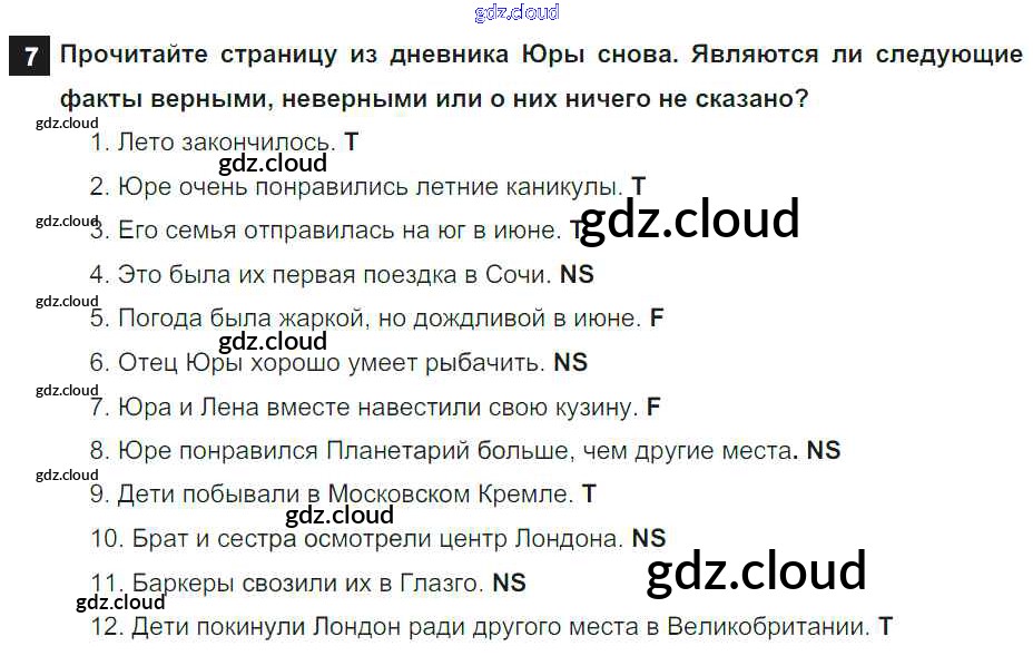 Ответ на задание 7 Учебник Английский язык  за 6 (шестой) класс Афанасьева, Михеева, Баранова Rainbow  2017 Часть 1, 2