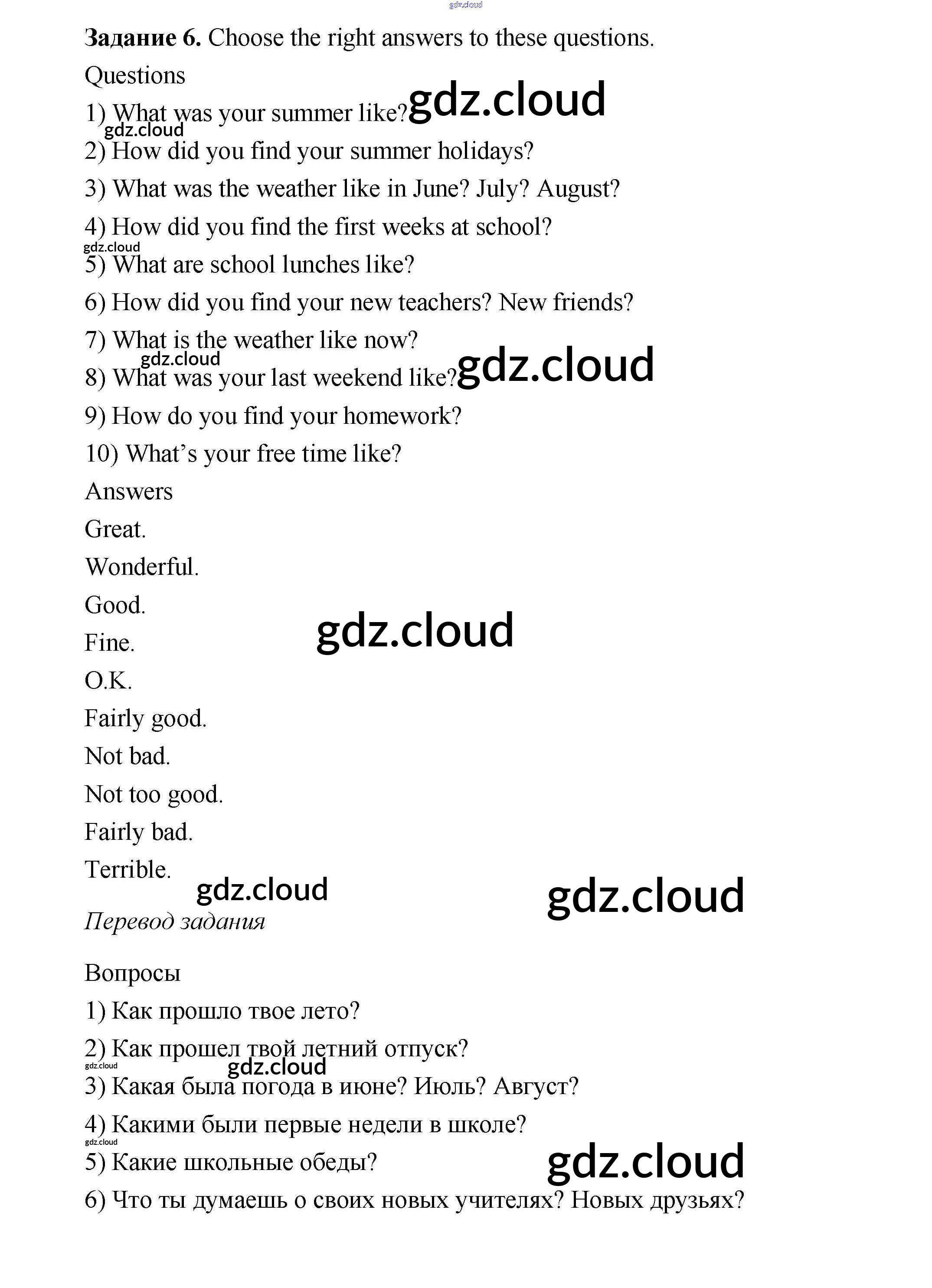 Ответ на задание 6 Учебник Английский язык  за 6 (шестой) класс Афанасьева, Михеева, Баранова Rainbow  2017 Часть 1, 2