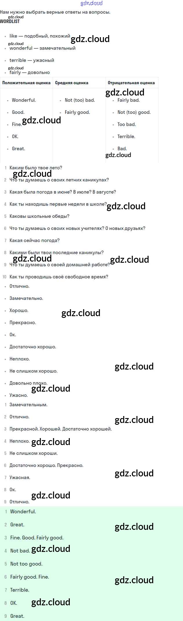 Step 3 Ответы к Unit 2 по Английскому языку 6 класс Учебник Афанасьева Rainbow  Часть 1, 2 Дрофа