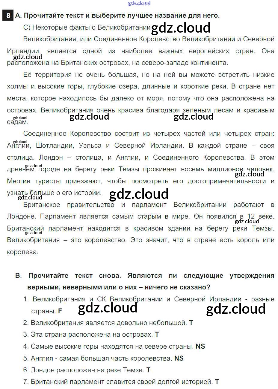 Ответ на задание 8 Учебник Английский язык  за 6 (шестой) класс Афанасьева, Михеева, Баранова Rainbow  2017 Часть 1, 2