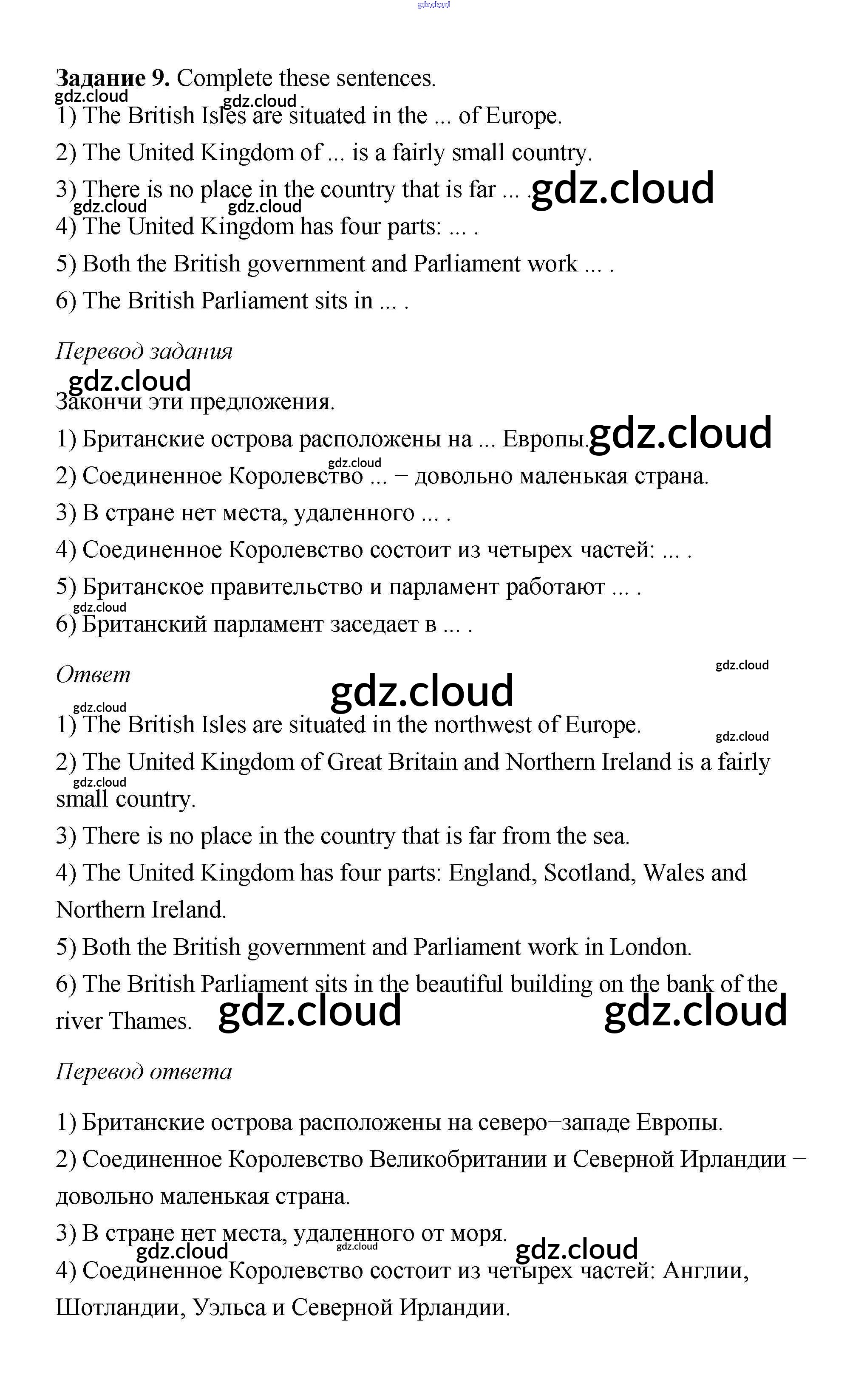 Ответ на задание 9 Учебник Английский язык  за 6 (шестой) класс Афанасьева, Михеева, Баранова Rainbow  2017 Часть 1, 2