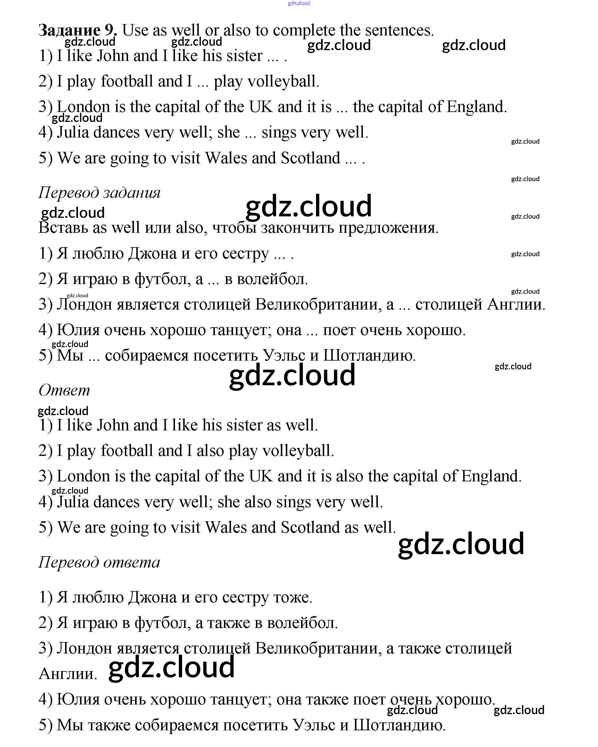 Ответ на задание 9 Учебник Английский язык  за 6 (шестой) класс Афанасьева, Михеева, Баранова Rainbow  2017 Часть 1, 2
