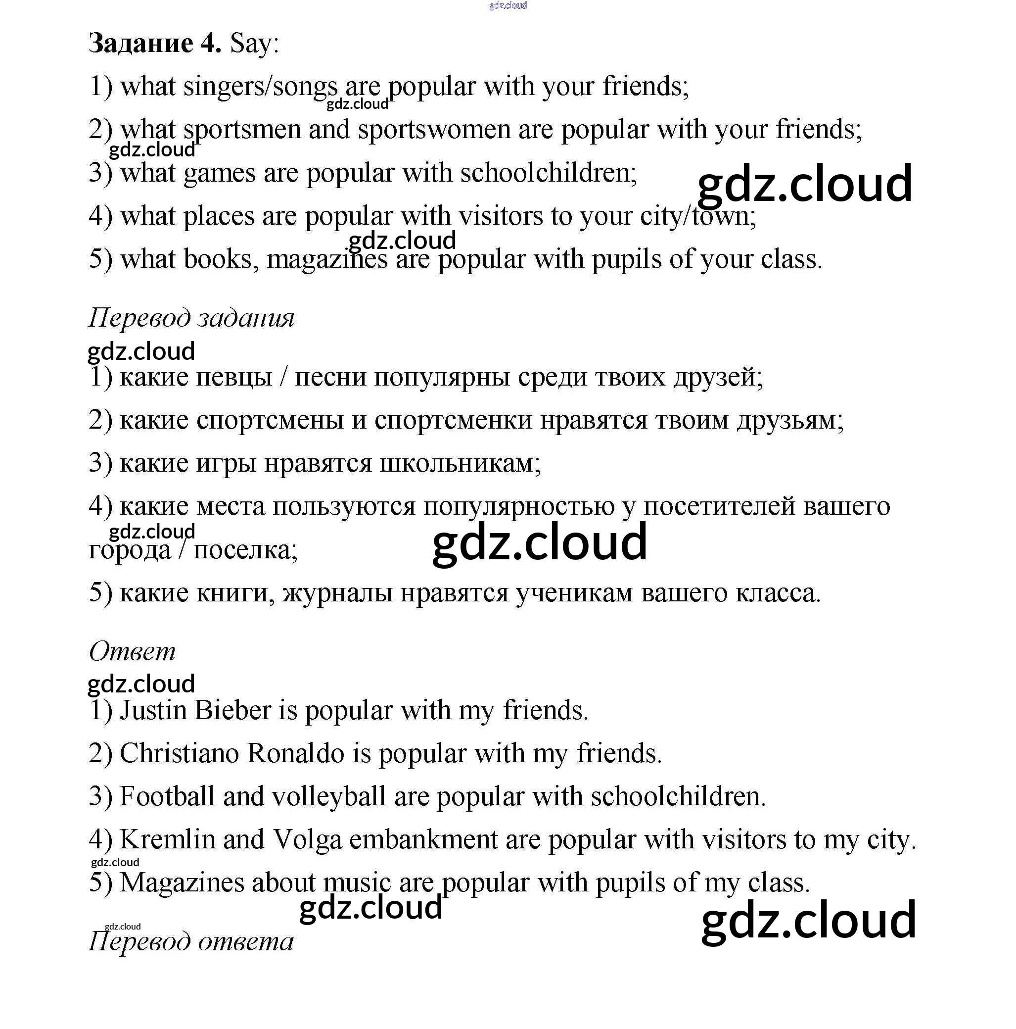 Ответ на задание 4 Учебник Английский язык за 6 (шестой) класс Афанасьева, Михеева, Баранова Rainbow 2017 Часть 1, 2