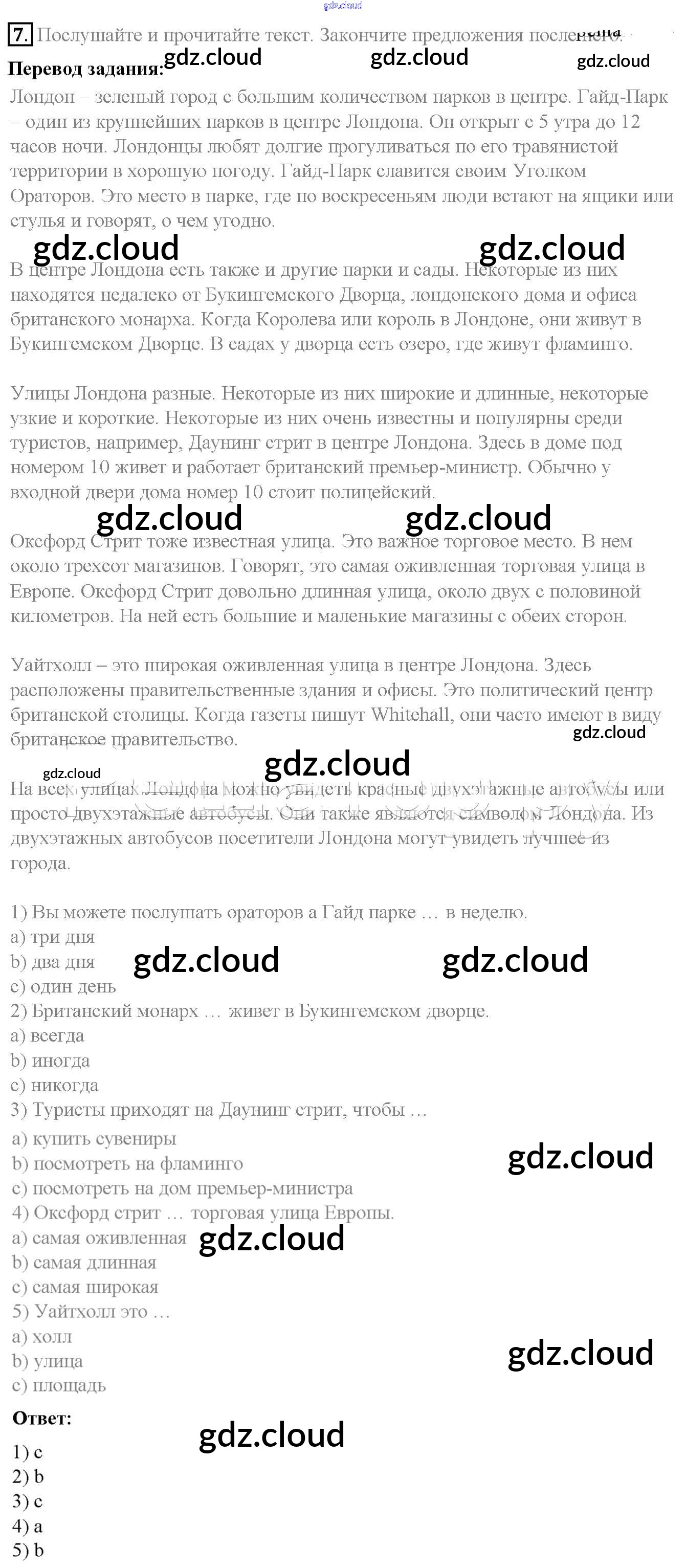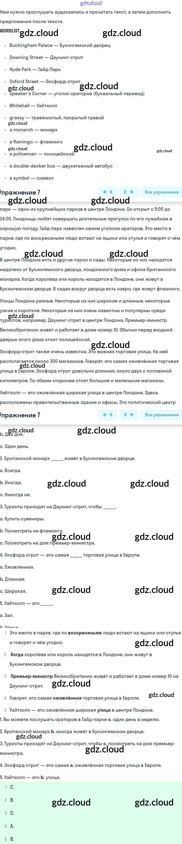 Ответ на задание 7 Учебник Английский язык  за 6 (шестой) класс Афанасьева, Михеева, Баранова Rainbow  2017 Часть 1, 2