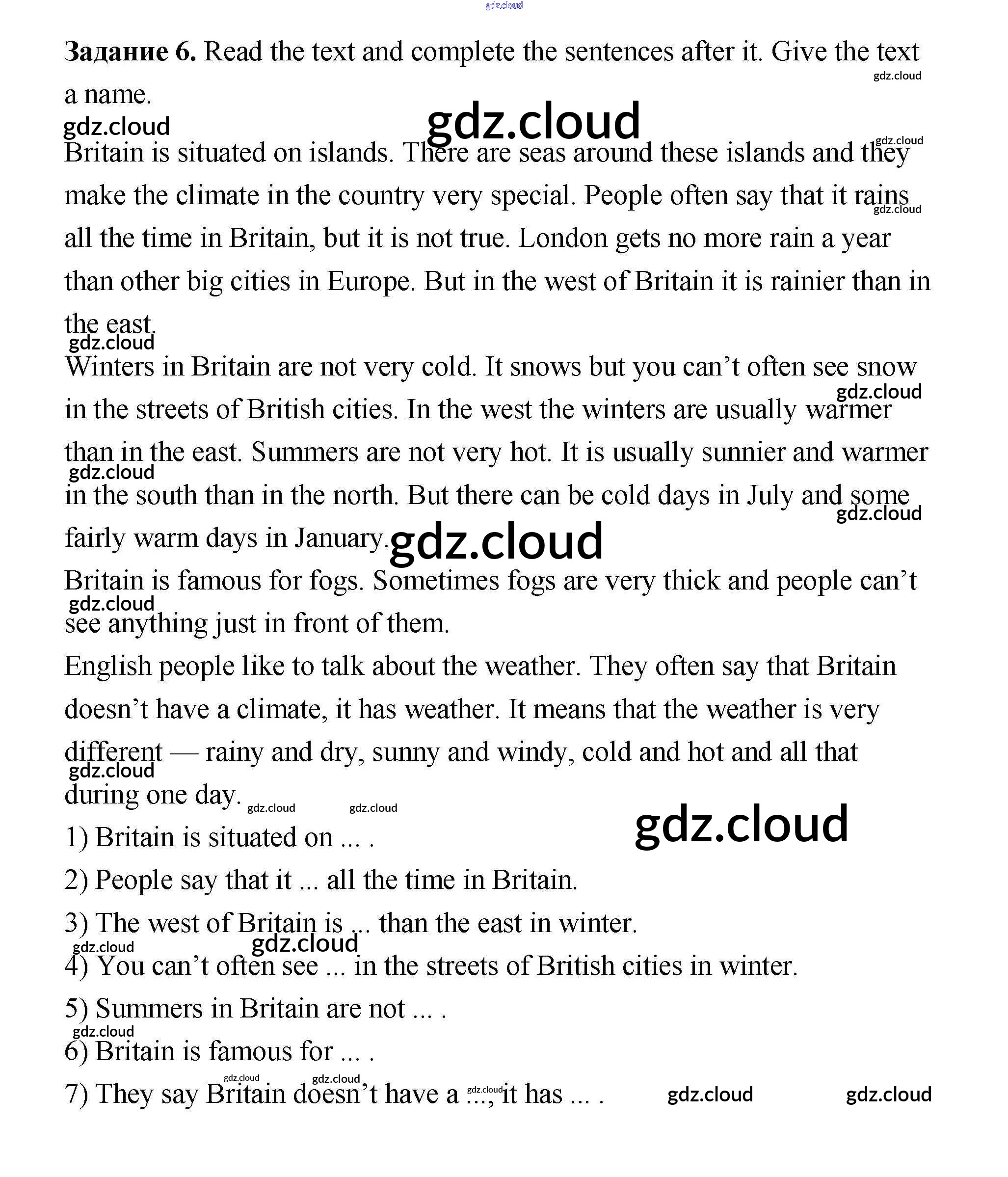 Ответ на задание 6 Учебник Английский язык  за 6 (шестой) класс Афанасьева, Михеева, Баранова Rainbow  2017 Часть 1, 2