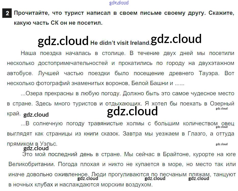 Ответ на задание 2 Учебник Английский язык  за 6 (шестой) класс Афанасьева, Михеева, Баранова Rainbow  2017 Часть 1, 2
