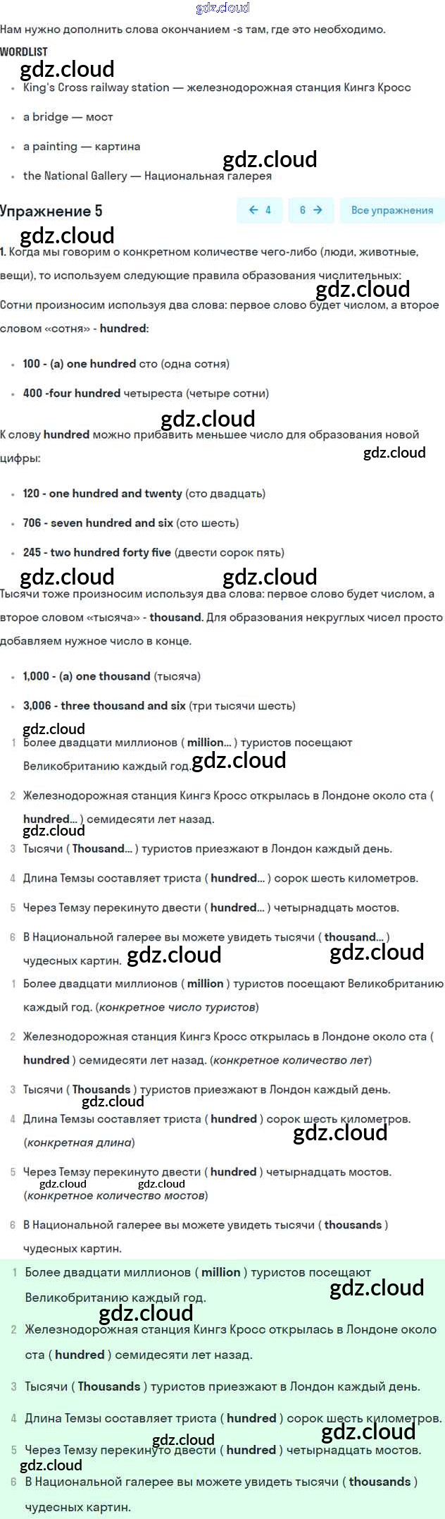 Ответ на задание 5 Учебник Английский язык  за 6 (шестой) класс Афанасьева, Михеева, Баранова Rainbow  2017 Часть 1, 2