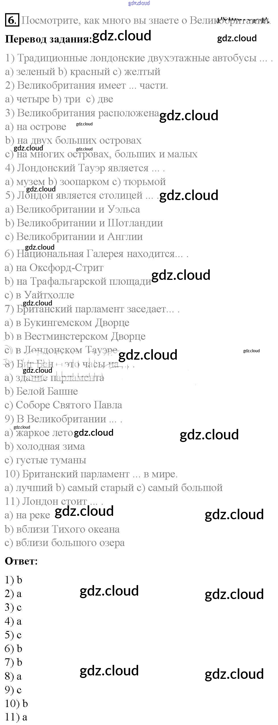 Ответ на задание 6 Учебник Английский язык  за 6 (шестой) класс Афанасьева, Михеева, Баранова Rainbow  2017 Часть 1, 2