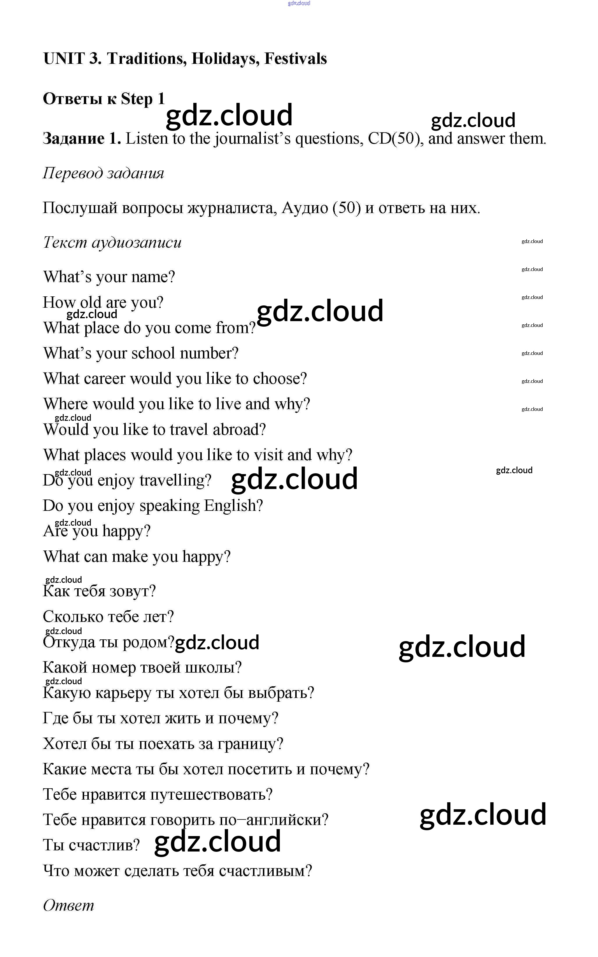 Step 1 Ответы к Unit 3 по Английскому языку 6 класс Учебник Афанасьева Rainbow  Часть 1, 2 Дрофа