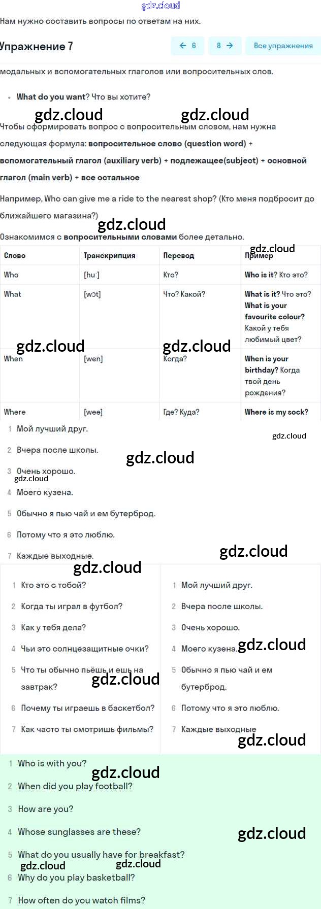 Ответ на задание 7 Учебник Английский язык  за 6 (шестой) класс Афанасьева, Михеева, Баранова Rainbow  2017 Часть 1, 2