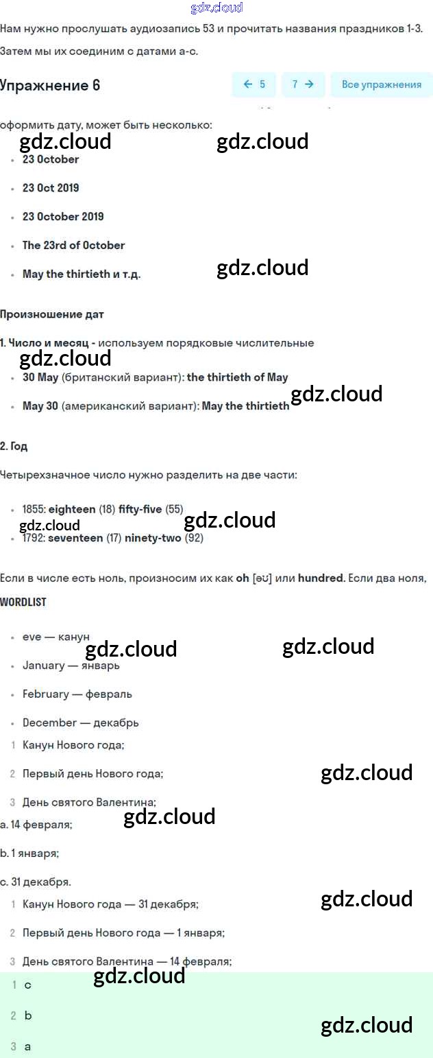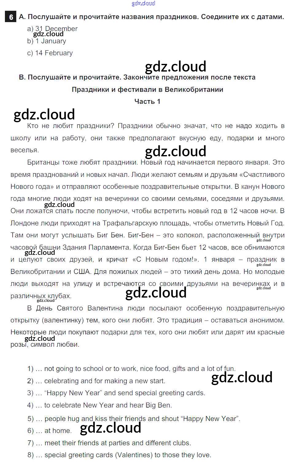 Ответ на задание 6 Учебник Английский язык  за 6 (шестой) класс Афанасьева, Михеева, Баранова Rainbow  2017 Часть 1, 2