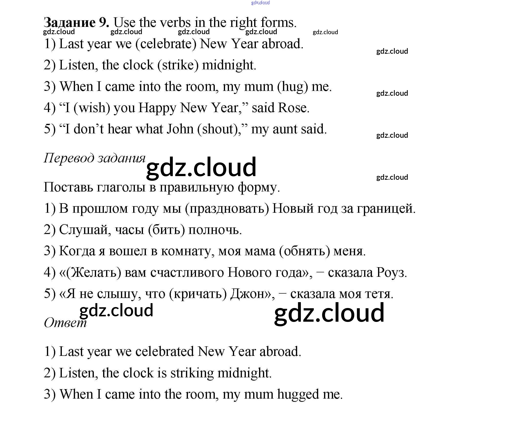 Ответ на задание 9 Учебник Английский язык  за 6 (шестой) класс Афанасьева, Михеева, Баранова Rainbow  2017 Часть 1, 2