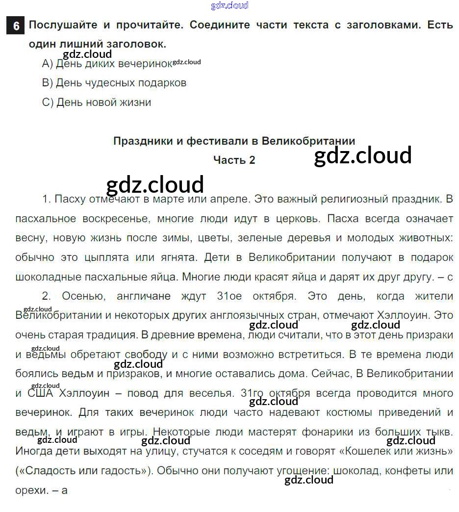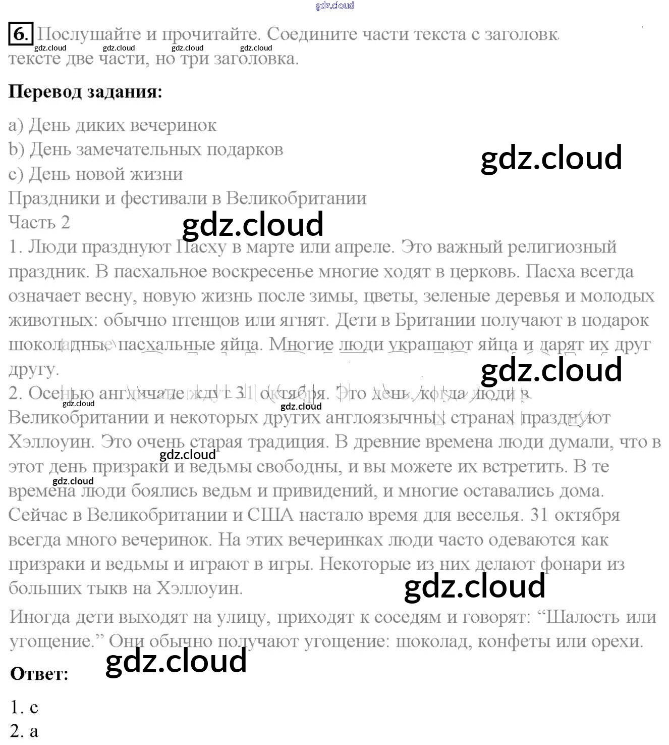 Ответ на задание 6 Учебник Английский язык  за 6 (шестой) класс Афанасьева, Михеева, Баранова Rainbow  2017 Часть 1, 2